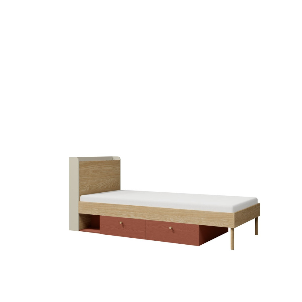 Łóżko młodzieżowe z dwoma szufladami to praktyczne i stylowe rozwiązanie do pokoju młodzieżowego. Wykonane z solidnej płyty laminowanej, zapewnia trwałość i łatwość w utrzymaniu czystości.