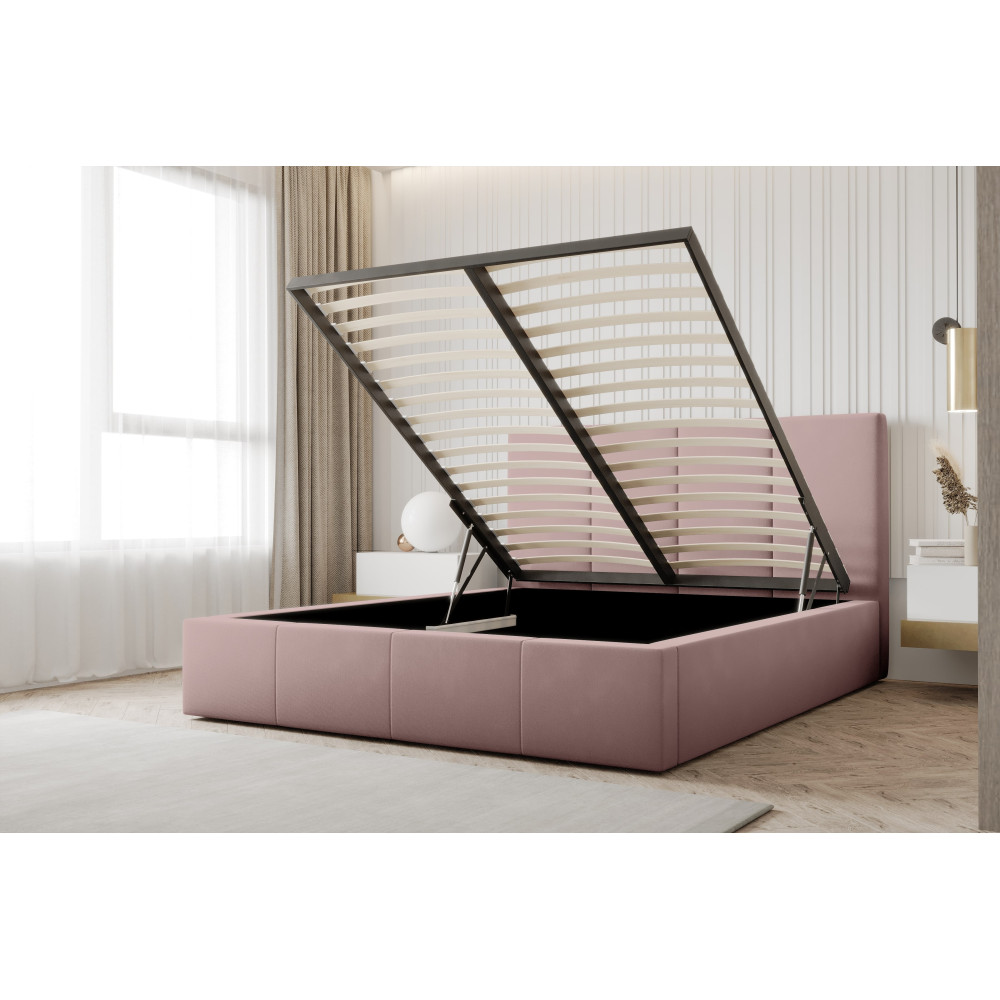 Stelaż drewniany złożony z 32 listew, gwarantujący odpowiednie podparcie dla materaca. Istnieje możliwość wyboru stelaża metalowego z podnośnikiem gazowym za dodatkową opłatą, co zwiększa funkcjonalność łóżka.