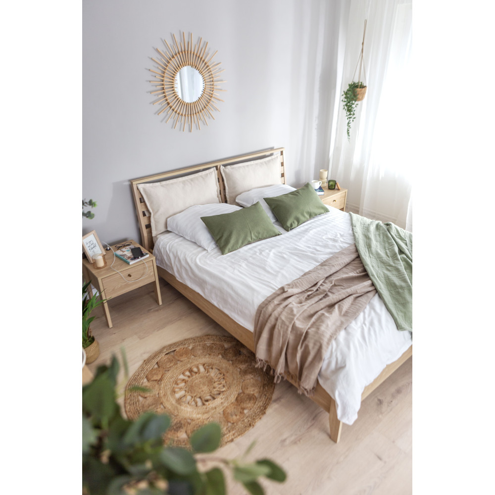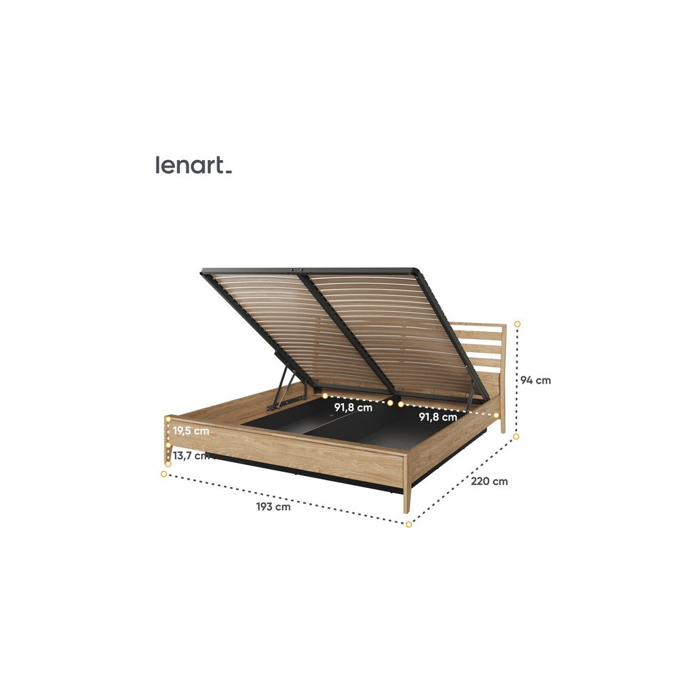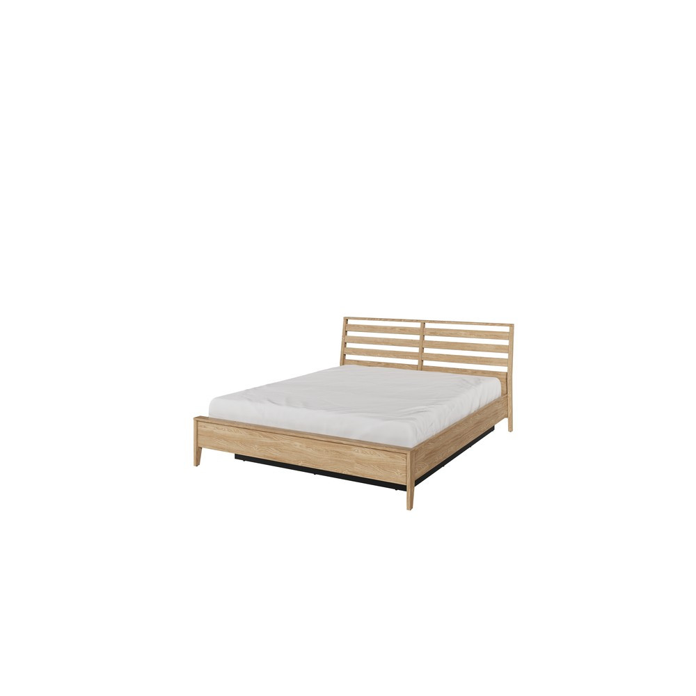 Łóżko w kolorze dąb olejowany to połączenie funkcjonalności i elegancji, idealne do nowoczesnych wnętrz. Wyposażone w solidną, czarną ramę, która zapewnia stabilność oraz długotrwałe użytkowanie. Smukłe nóżki nadają lekkości i podkreślają nowoczesny styl mebla.