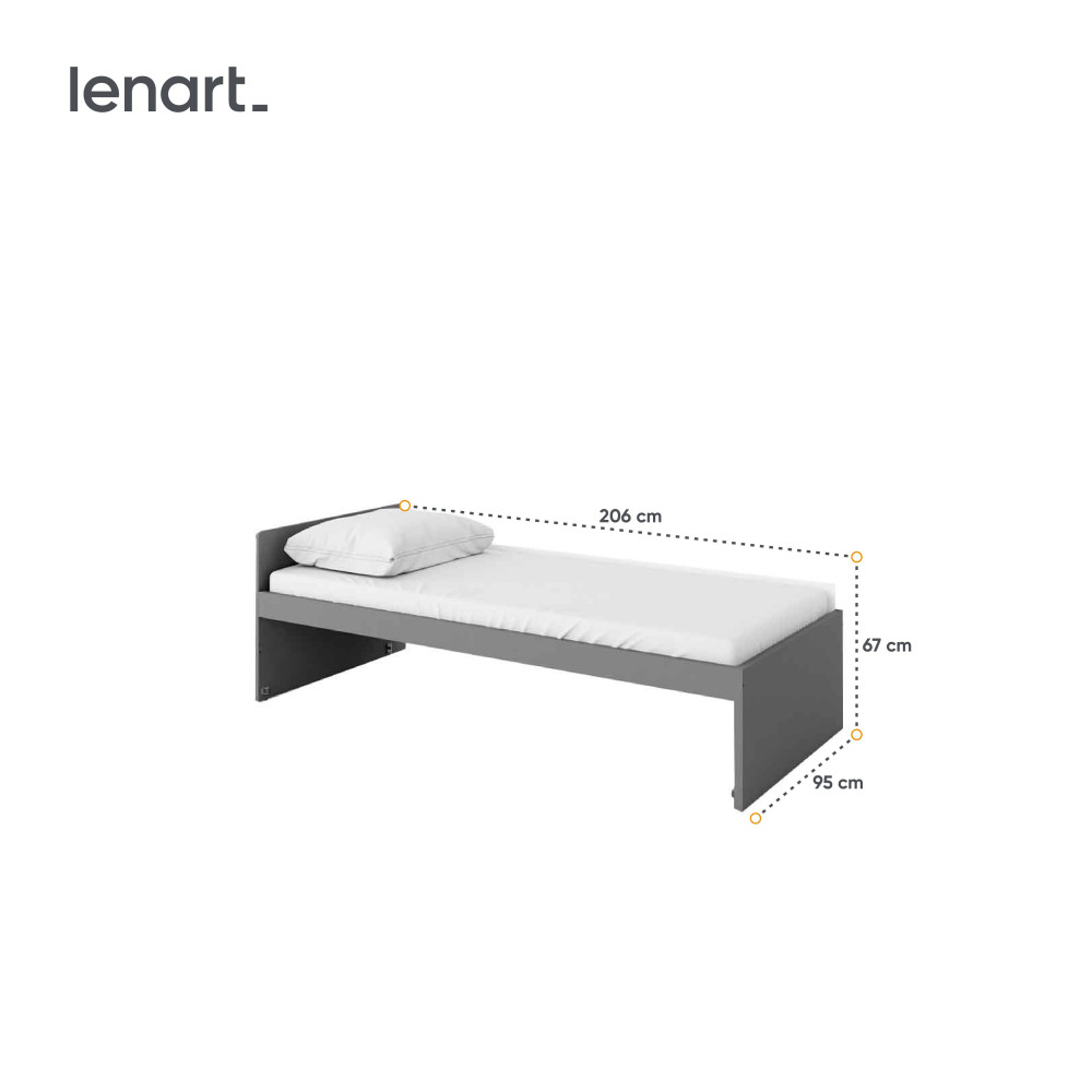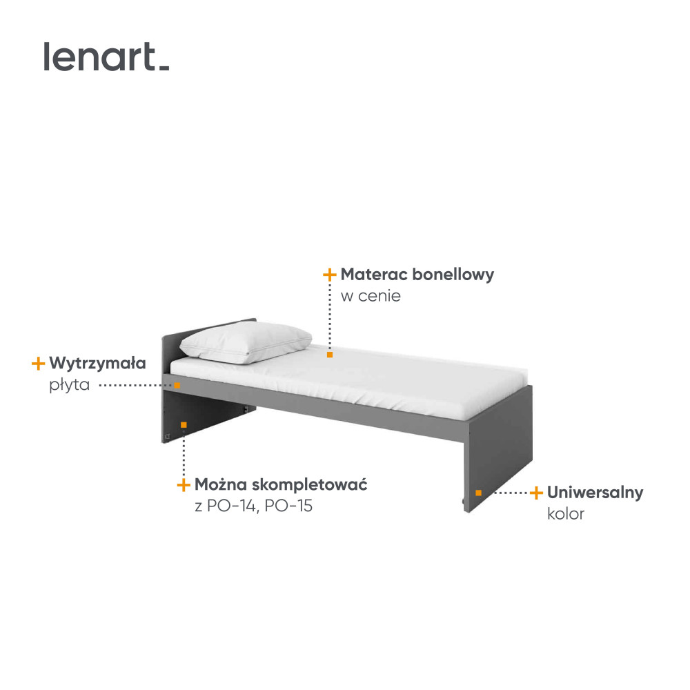 Pojedyncze łóżko dla dzieci i młodzieży to idealne rozwiązanie dla komfortowego snu i odpoczynku. W zestawie znajduje się wygodny, bonellowy materac, który zapewnia odpowiednie wsparcie. Łóżko można skompletować z dwoma rodzajami szuflad: z dodatkowym materacem i pojemnikiem na pościel lub z głęboką szufladą na pościel, co pozwala na maksymalne wykorzystanie przestrzeni. Nowoczesny design i funkcjonalność sprawiają, że łóżko doskonale wpasuje się w każde wnętrze dziecięcego lub młodzieżowego pokoju.