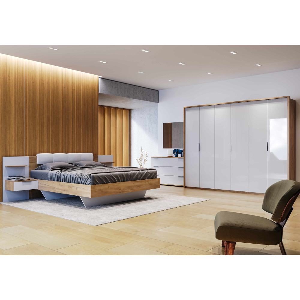 ZESTAW sypialniany Amanda, szafa 6D, łóżko 160x200, szafki nocne, komoda 3SZ, lustro