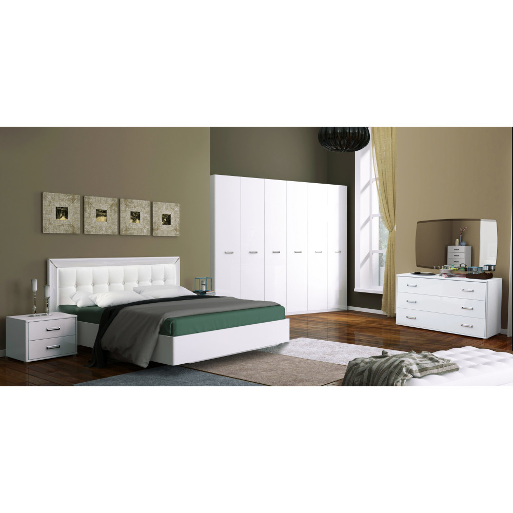 Zestaw sypialniany Betina 6D szafa, łóżko 160x200, komoda 3SZ, 2szt. stolik nocny, lustro.