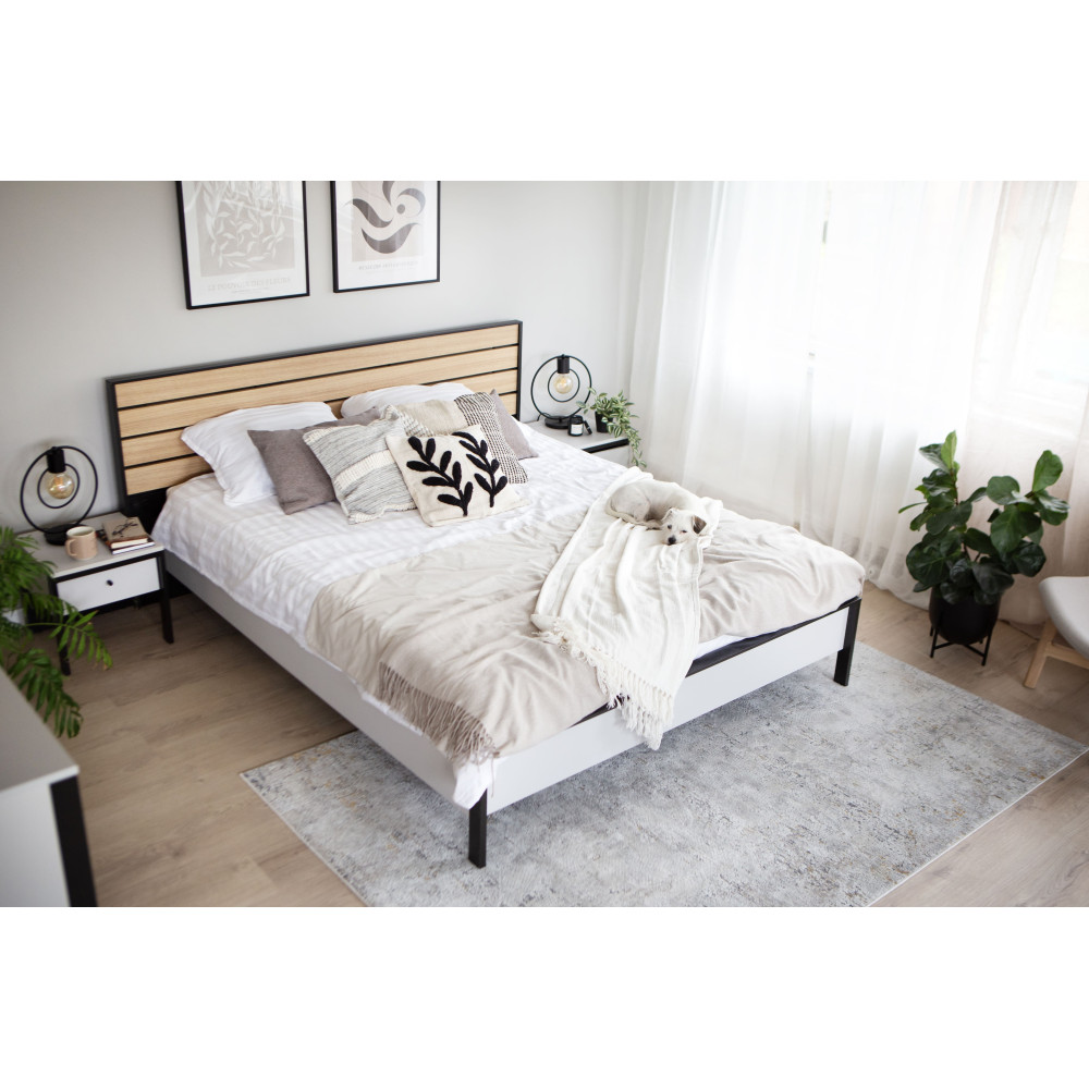 Nowoczesne łóżko do sypialni to doskonałe połączenie stylu i funkcjonalności. Przeznaczone do materaca o szerokości 180 cm, wyposażone jest w stelaż szczebelkowy, który zapewnia optymalne podparcie i prawidłowe ułożenie materaca.