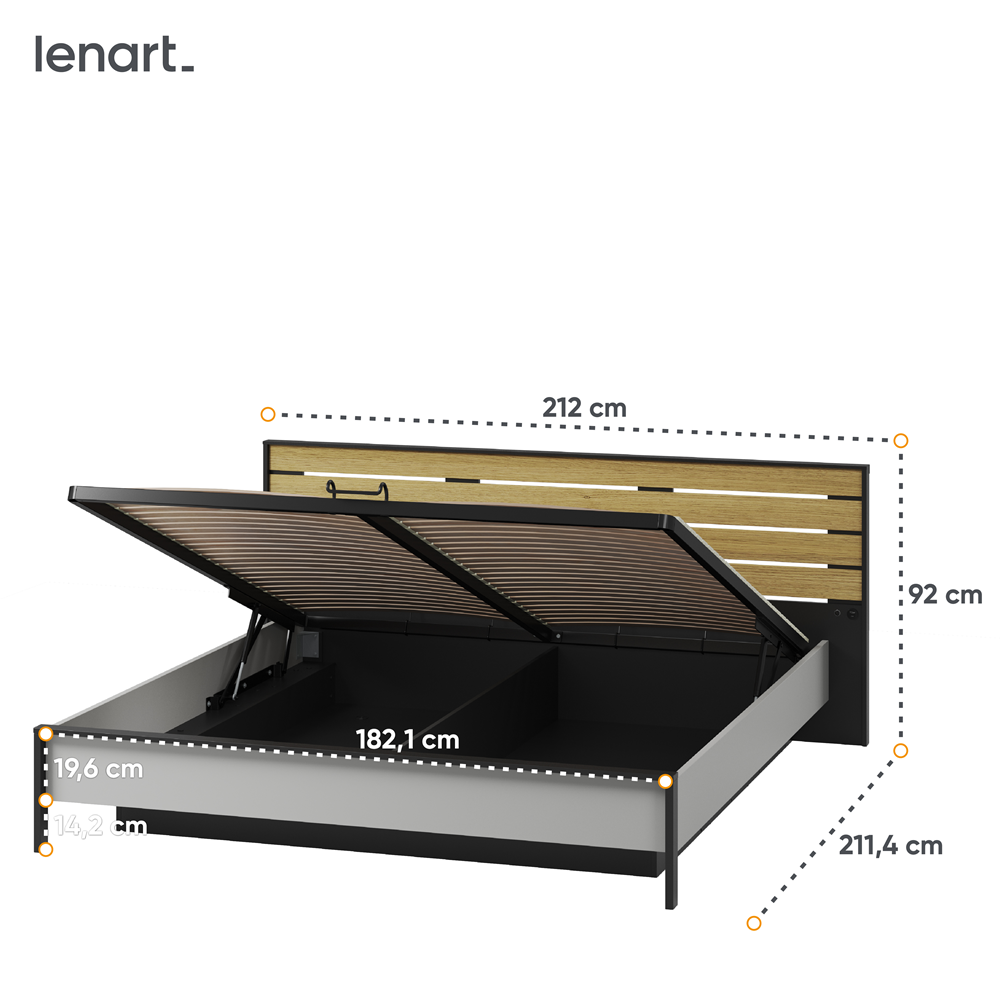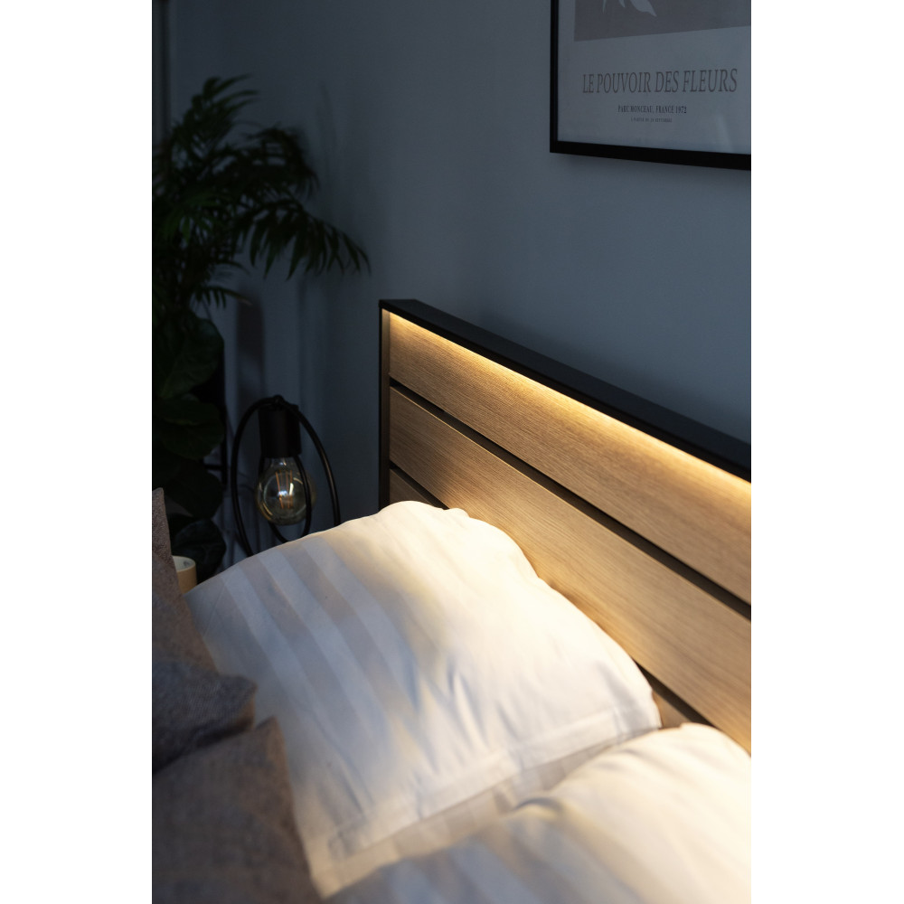 Dodatkowym atutem jest klimatyczne oświetlenie LED, które dołączone jest do zestawu, tworząc przytulną atmosferę w sypialni. Mebel posiada również wmontowane wejścia typu USB, które zapewnia jeszcze większą wygodę użytkowania. To łóżko pozwala stworzyć komfortowe i eleganckie miejsce do wypoczynku.