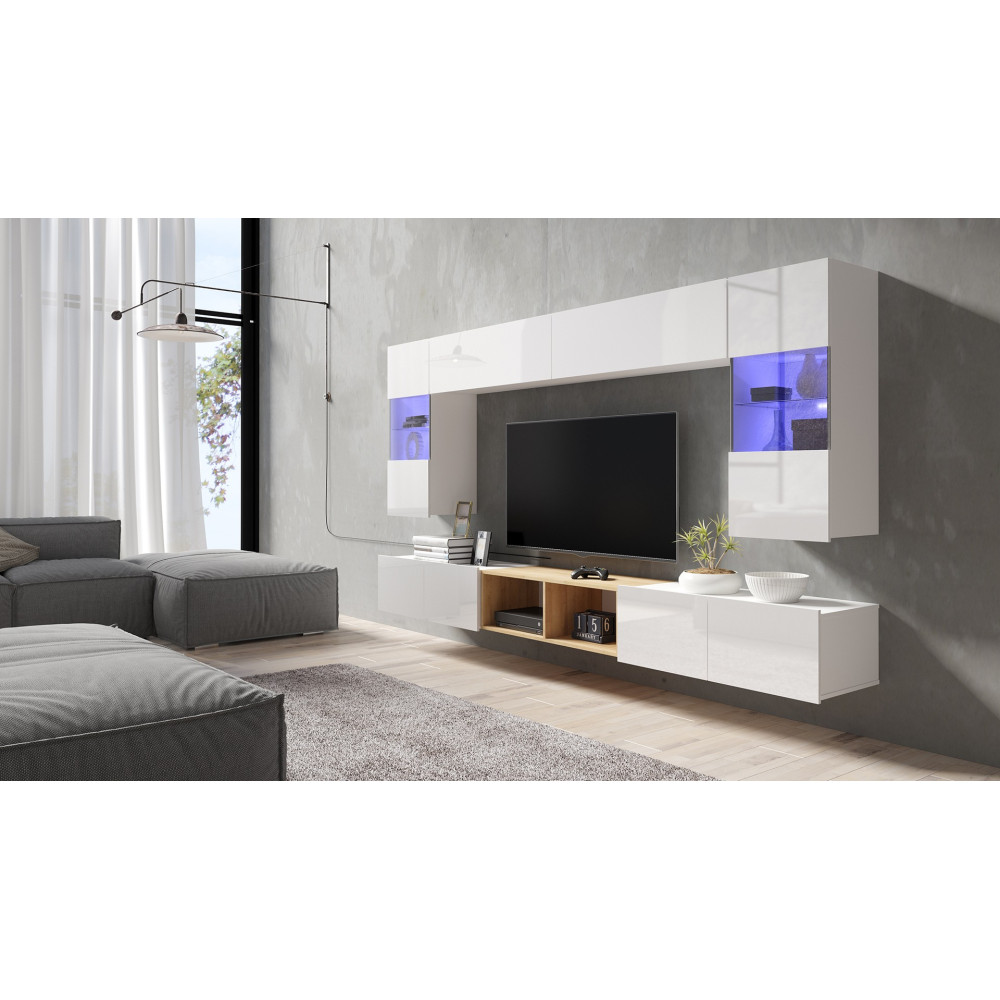 System Rossi składa się z 30 kompletów meblościanek w różnych opcjach kolorystycznych. Wszystkie elementy z zestawów można zakupić osobno. W ramach jednego zestawu oferujemy: