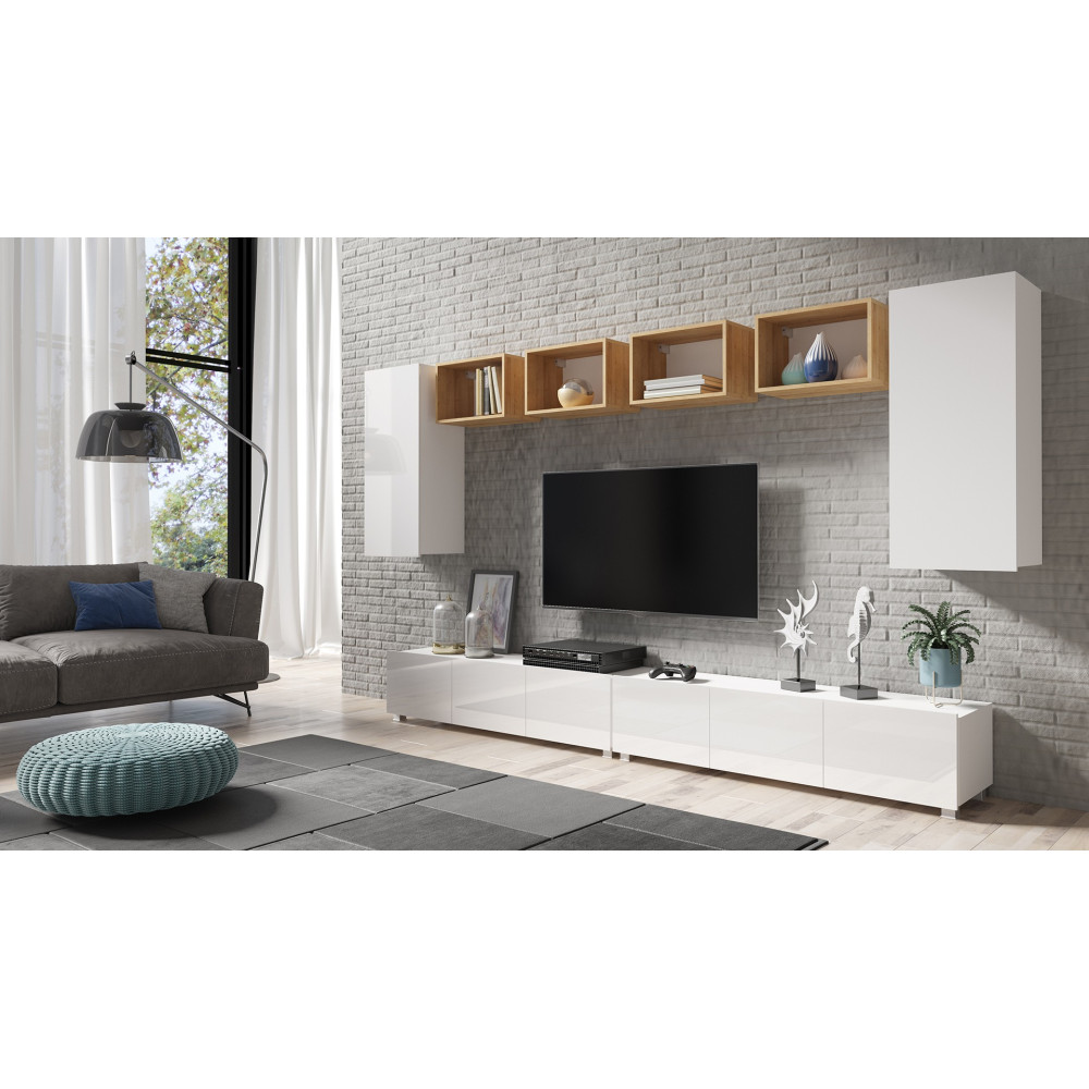 System Rossi składa się z 30 kompletów meblościanek w różnych opcjach kolorystycznych. Wszystkie elementy z zestawów można zakupić osobno. W ramach jednego zestawu oferujemy: