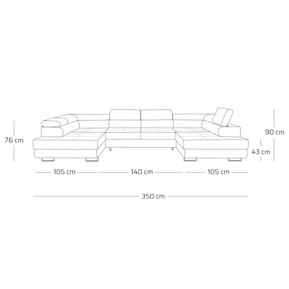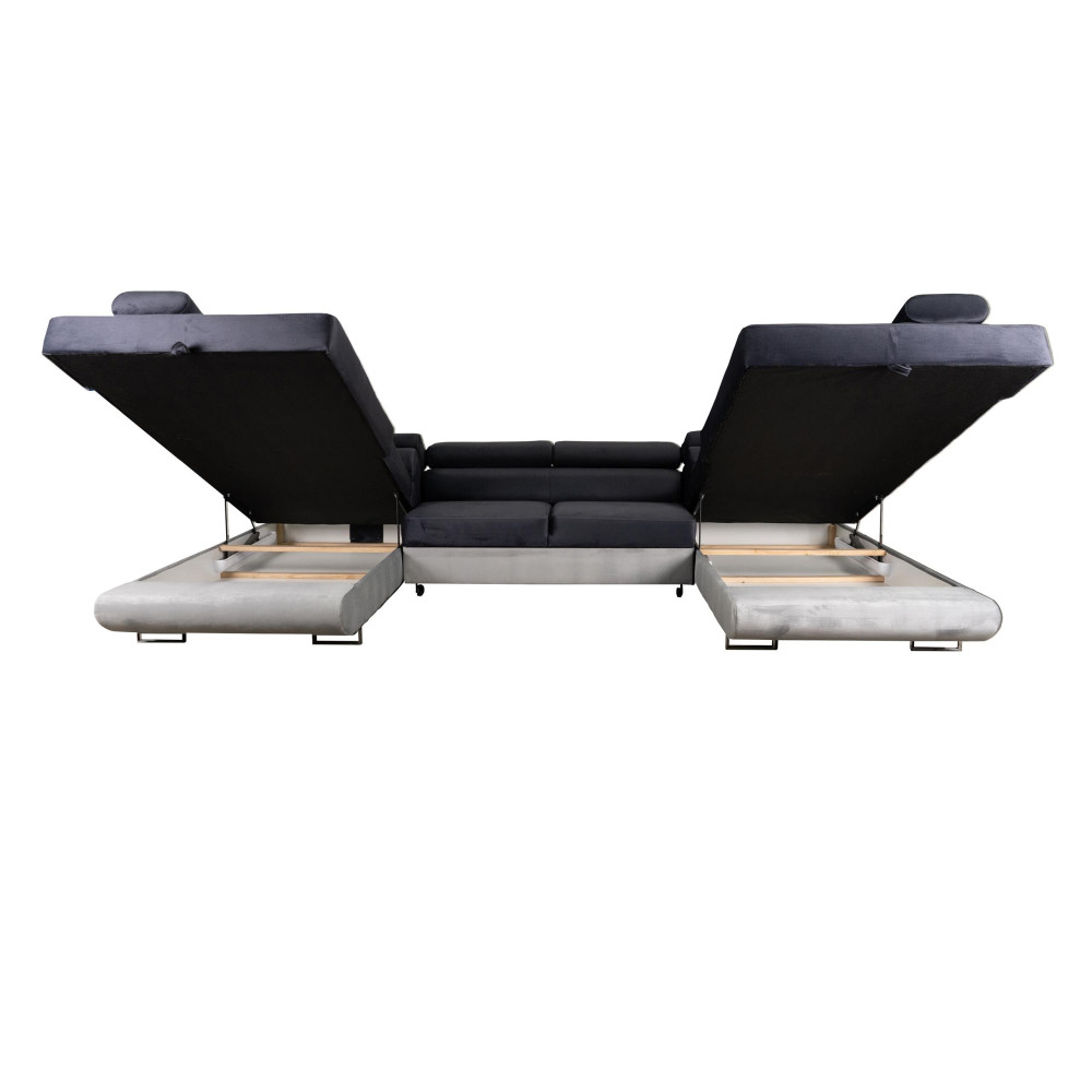 • Wysuwany fragment części do spania standardowo wykonany jest w innej tkaninie niż całość narożnika. Kolor tkaniny jest wybierany losowo (szary / czarny / biały)