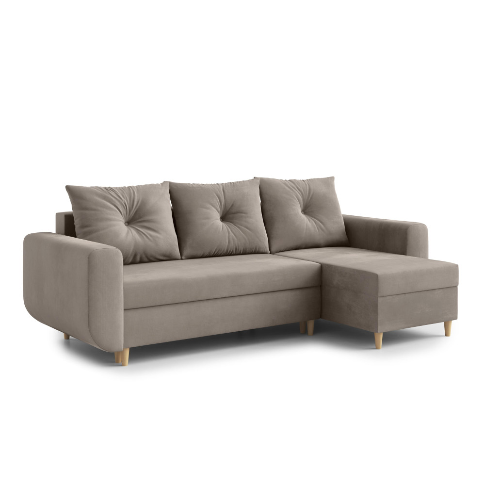 Narożnik EVO ma również trzy pikowane poduszki, które dodają mu stylu i komfortu. Drewniane nogi oraz zaokrąglone boczki nadają mu eleganckiego wyglądu. Jest to idealny wybór dla osób poszukujących mebli, które są zarówno funkcjonalne, jak i estetyczne.