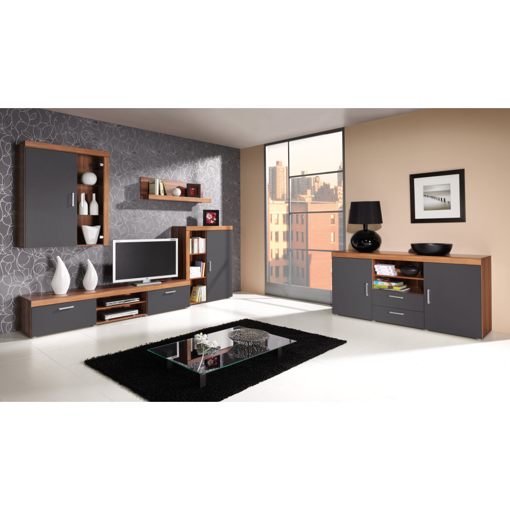 Półka Rumba emanuje elegancją i solidnością dzięki swojej starannie wykonanej konstrukcji i wysokiej jakości materiałom. Jej powierzchnia, wykonana z trwałych płyt laminowanych, prezentuje się wyjątkowo gładko i lśniąco, nadając wnętrzu pomieszczenia nutę nowoczesności.