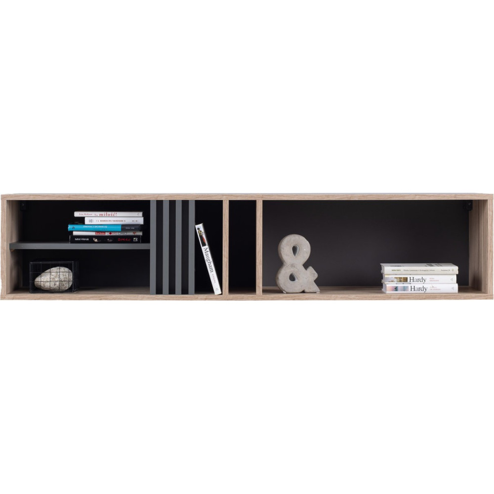 System meblowy Alikante to kompleksowy zestaw mebli, który cechuje się nowoczesnym designem oraz wysoką funkcjonalnością. Głównym materiałem używanym do produkcji tych mebli jest płyta laminowana o odcieniach kolorystycznych Dąb Estana Jasny oraz elegancki Antracyt.