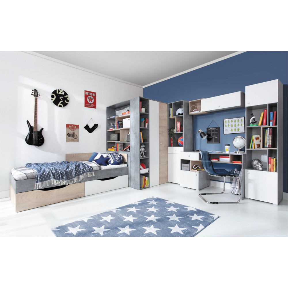 System meblowy młodzieżowy Sam to kolekcja nowoczesnych mebli o atrakcyjnym designie, zaprojektowanych specjalnie z myślą o młodych osobach. Meble te cechuje wysoka jakość wykonania, funkcjonalność oraz przyjazność dla użytkownika. Dzięki różnorodnym elementom, takim jak szafy, biurka czy łóżka, Sam umożliwia skomponowanie harmonijnej i praktycznej przestrzeni życiowej, dostosowanej do indywidualnych potrzeb i preferencji młodego użytkownika.