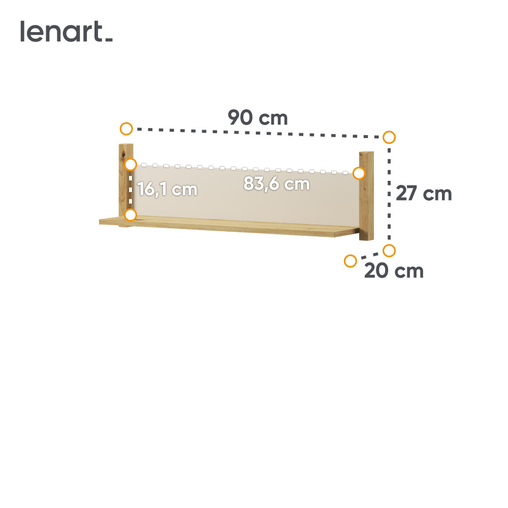 Półka wisząca w subtelnej kolorystyce beżu, trufli i dębu artisan doskonale uzupełnia każde wnętrze, pasując zarówno do pokoju dziewczynki, jak i chłopca. Wykonana z wysokiej jakości materiałów, zapewnia trwałość i elegancki wygląd, a jej minimalistyczny design idealnie komponuje się z pozostałymi meblami.