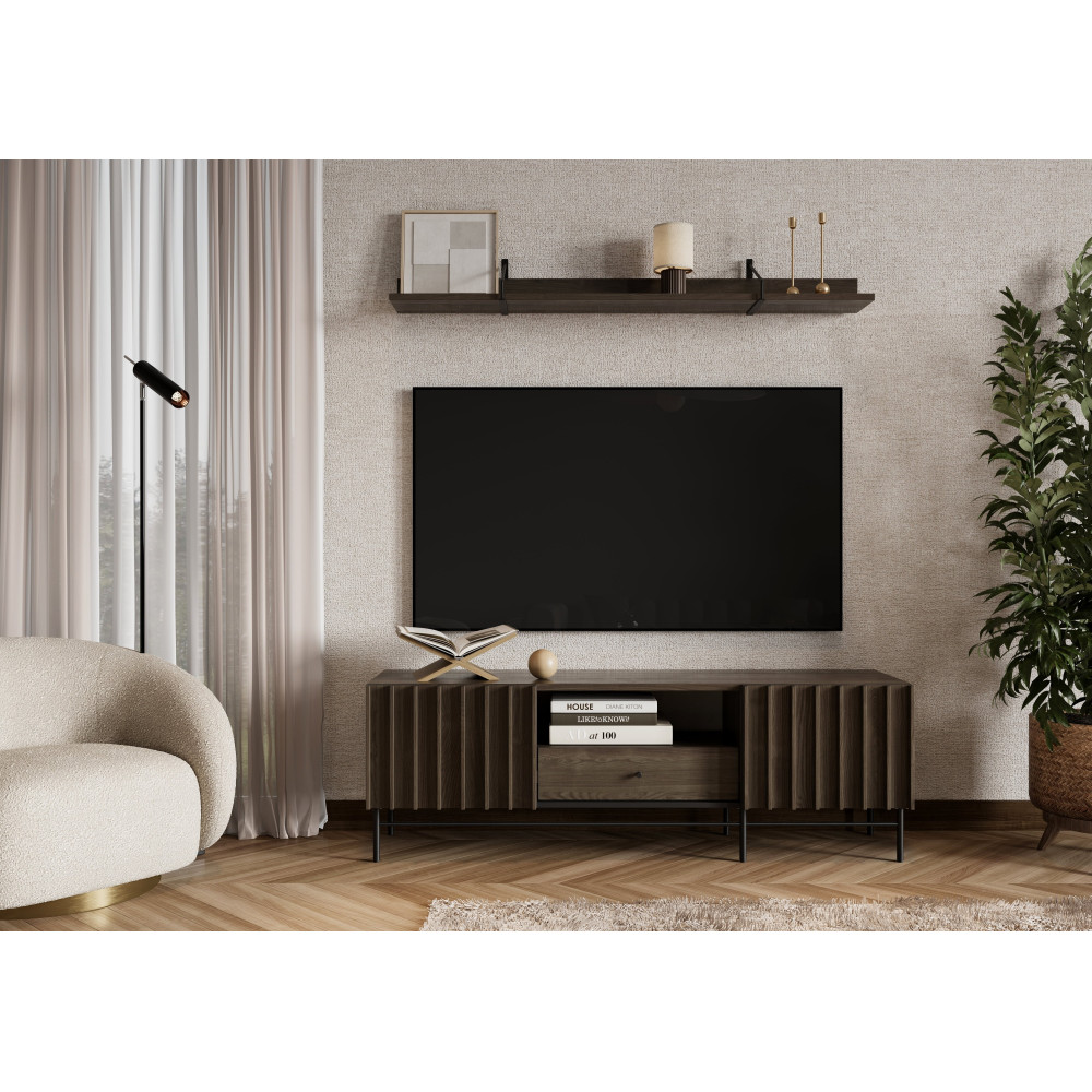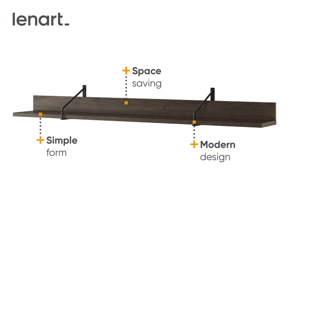 Półka wisząca na ścianę to doskonałe połączenie prostoty i funkcjonalności, idealne do nowoczesnych wnętrz. Jej minimalistyczny design świetnie sprawdza się w salonach, gdzie ograniczona przestrzeń wymaga przemyślanych rozwiązań. Dzięki umiejscowieniu na ścianie, półka nie zajmuje cennej przestrzeni podłogowej, co pozwala na optymalne zagospodarowanie wnętrza. Oryginalne połączenie koloru jesion portland z czernią nadaje jej elegancki wygląd, który doskonale komponuje się z innymi elementami wyposażenia. To praktyczny mebel, który nie tylko pełni funkcję przechowywania, ale także staje się stylowym akcentem dekoracyjnym w Twoim salonie.
