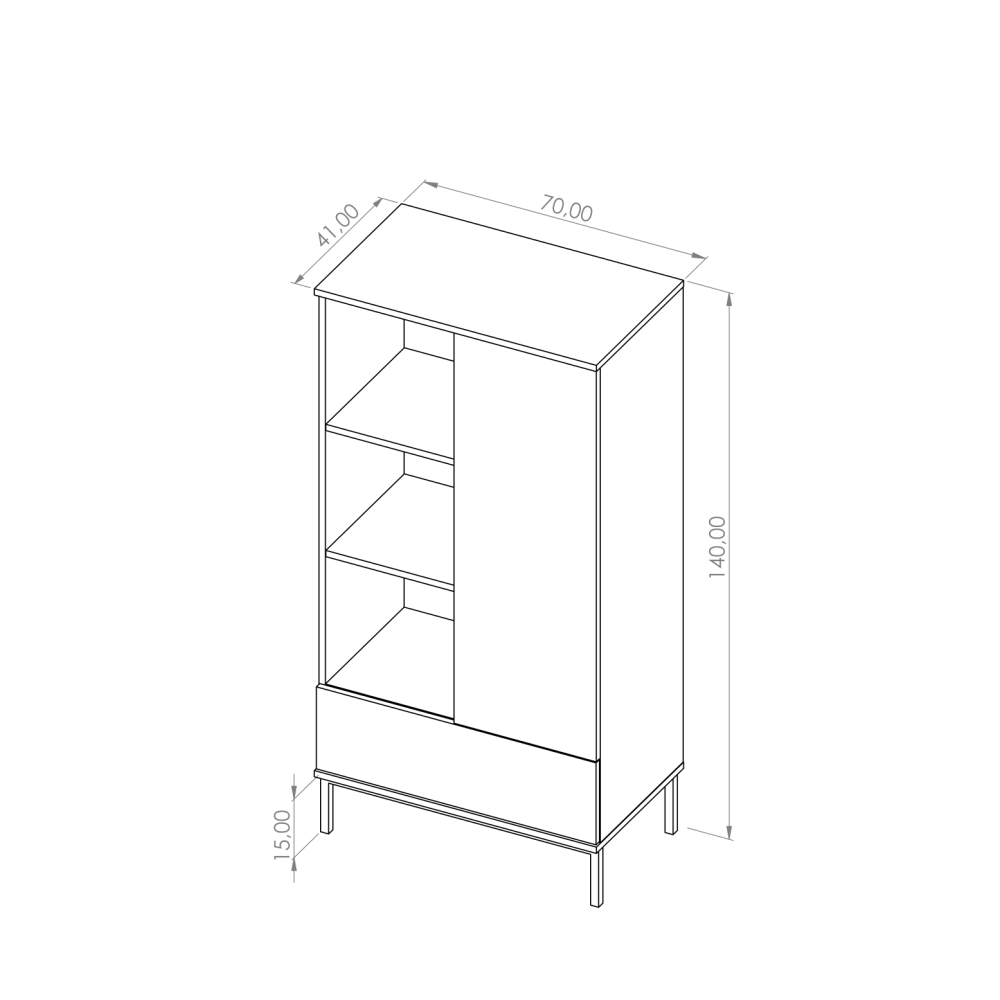 Dzięki swojej wysokości, regał z kolekcji Amelia wykorzystuje przestrzeń wertykalną, oszczędzając miejsce na podłodze i nadając pomieszczeniu lekkości. Jest to doskonały mebel do salonu, biura czy sypialni, który łączy funkcjonalność z estetyką.