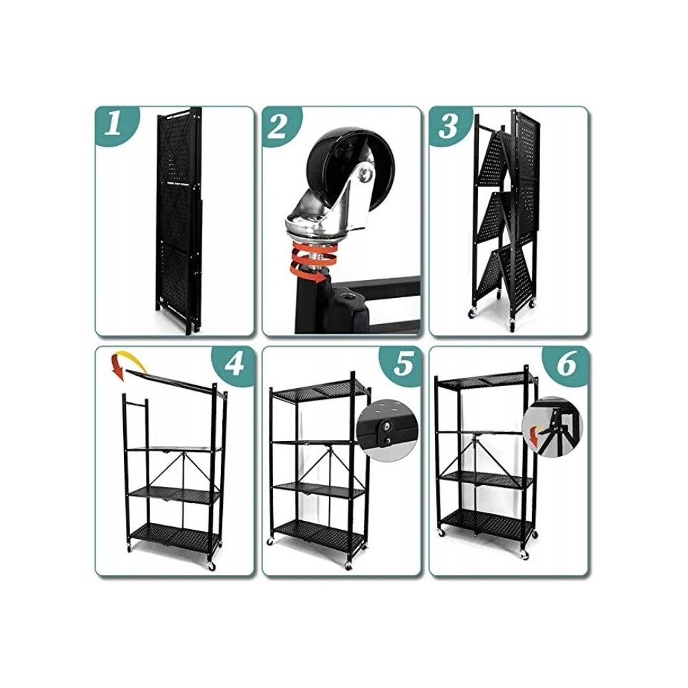 SKŁADANY REGAŁ MAGAZYNOWY / KUCHENNY NA KÓŁKACH Z 4 PÓŁKAMI