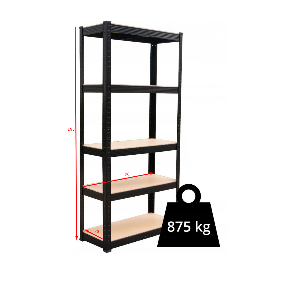 - Całkowite obciążenie regału to aż 875 kg! (przy równomiernym rozmieszczeniu ciężaru)