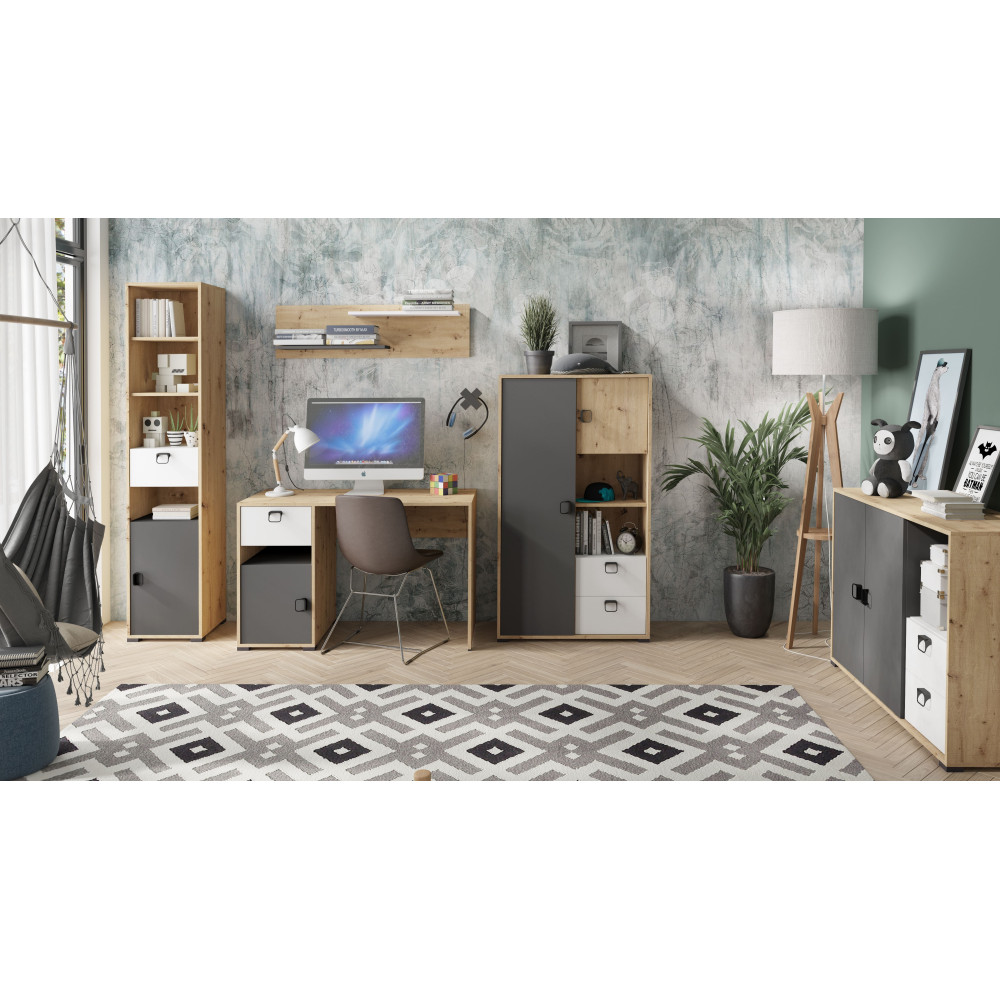 • dąb artisan / grafit / biały