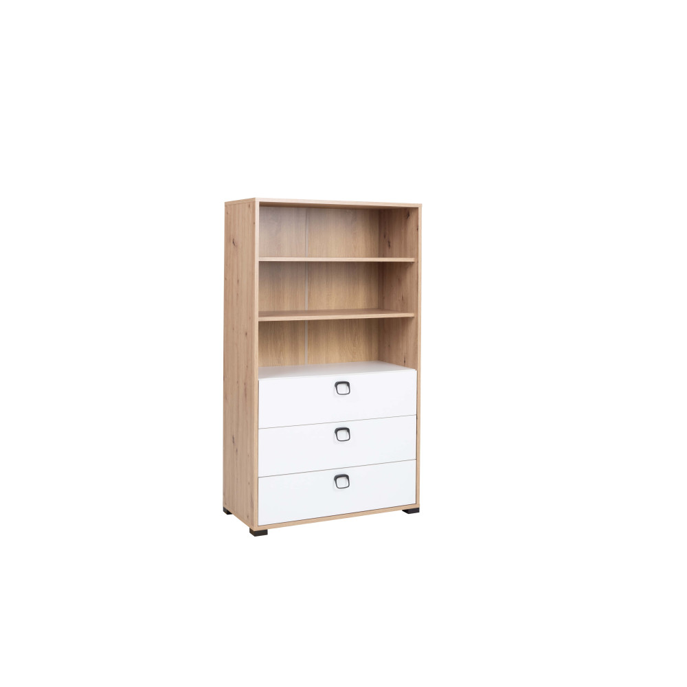 Regał młodzieżowy "Elena" to eleganckie i funkcjonalne rozwiązanie do pokoju młodzieżowego. Jego stylowa konstrukcja została wykonana z solidnej płyty laminowanej, co gwarantuje trwałość oraz łatwość w utrzymaniu czystości.