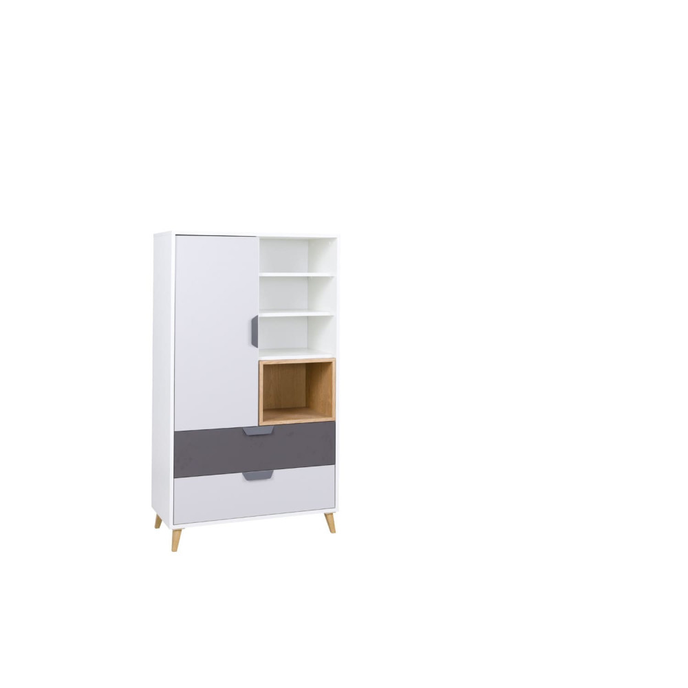 Regał młodzieżowy Evitas to doskonałe rozwiązanie, łączące funkcjonalność, styl i trwałość. Jego korpus i fronty wykonane są z wysokiej jakości płyty laminowanej, co zapewnia nie tylko estetyczny wygląd, ale także łatwość w utrzymaniu czystości.