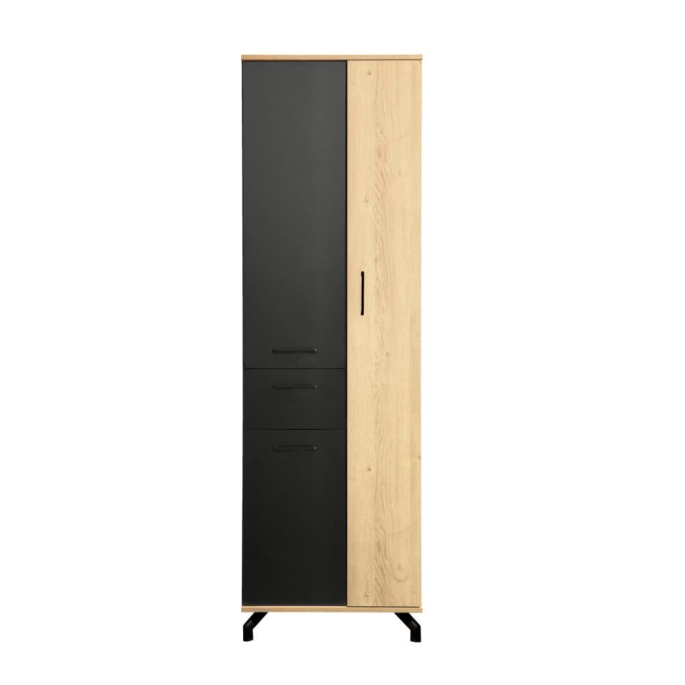 System meblowy Marsylia to kompleksowy zestaw mebli, który cechuje się nowoczesnym designem oraz wysoką funkcjonalnością. Głównym materiałem używanym do produkcji tych mebli jest płyta laminowana o odcieniach kolorystycznych Dąb Biszkoptowy/Biały lub Dąb Biszkoptowy/Czarny.
