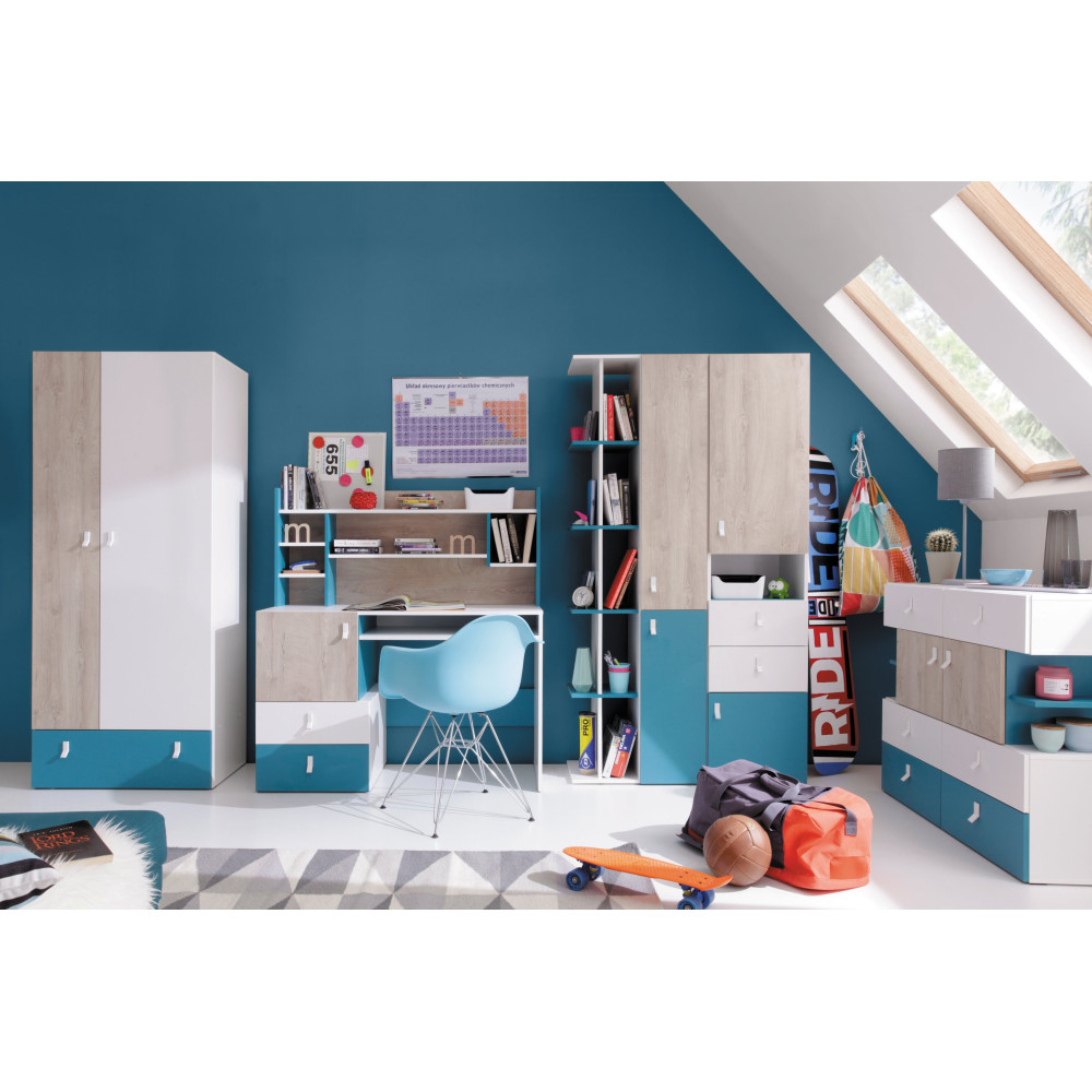 System meblowy młodzieżowy Plan to kolekcja nowoczesnych mebli o atrakcyjnym designie, zaprojektowanych specjalnie z myślą o młodych osobach. Meble te cechuje wysoka jakość wykonania, funkcjonalność oraz przyjazność dla użytkownika. Dzięki różnorodnym elementom, takim jak szafy, biurka czy łóżka, Plan umożliwia skomponowanie harmonijnej i praktycznej przestrzeni życiowej, dostosowanej do indywidualnych potrzeb i preferencji młodego użytkownika.