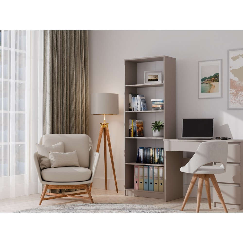 Elegancki i funkcjonalny regał R60 w kolorze glina to perfekcyjne rozwiązanie do przechowywania książek, segregatorów, zabawek oraz materiałów biurowych.