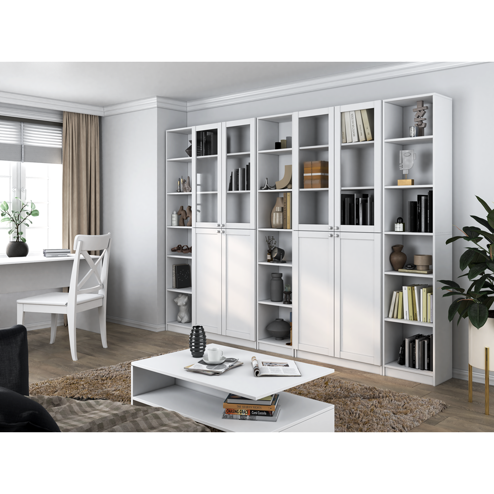 Za przeszklonymi drzwiami znajduje się 6 przestronnych półek, które umożliwiają efektywne zorganizowanie i uporządkowanie różnych przedmiotów - od książek i dokumentów po dekoracje.