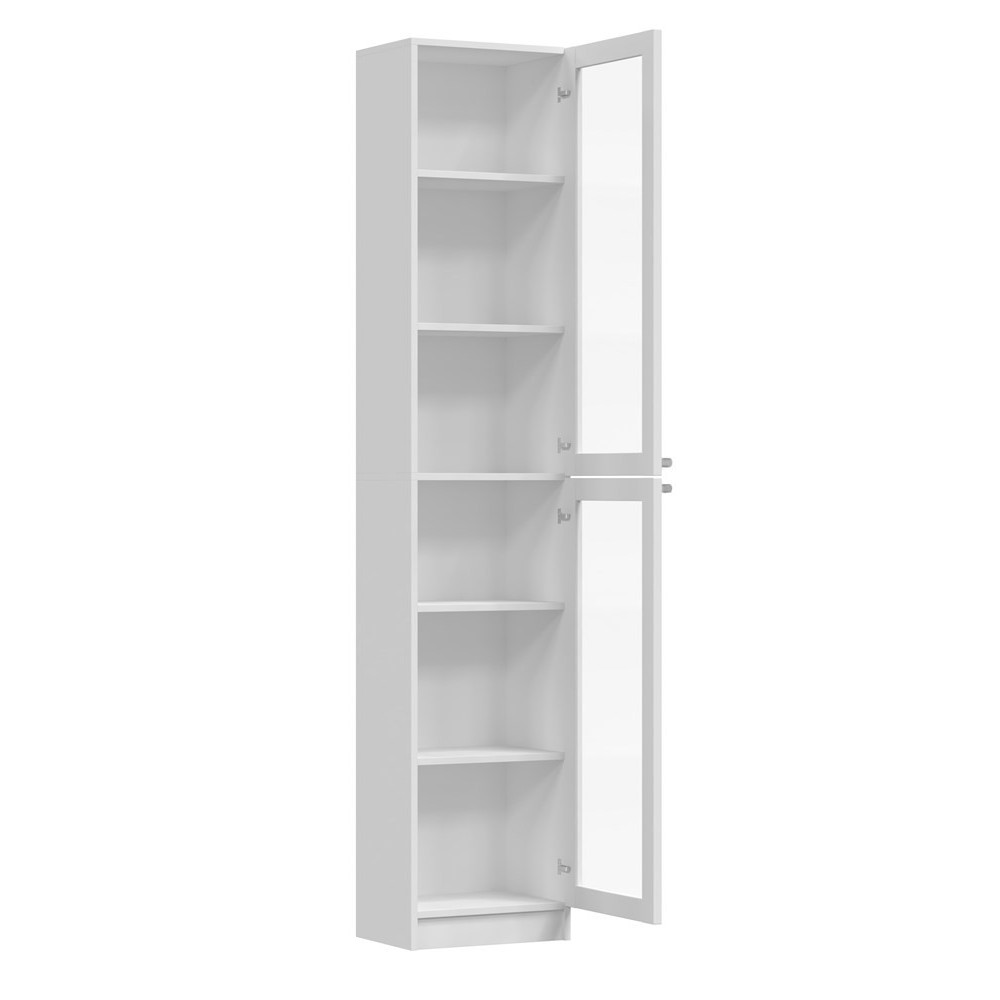 Za przeszklonymi drzwiami znajduje się 6 przestronnych półek, które umożliwiają efektywne zorganizowanie i uporządkowanie różnych przedmiotów - od książek i dokumentów po dekoracje.