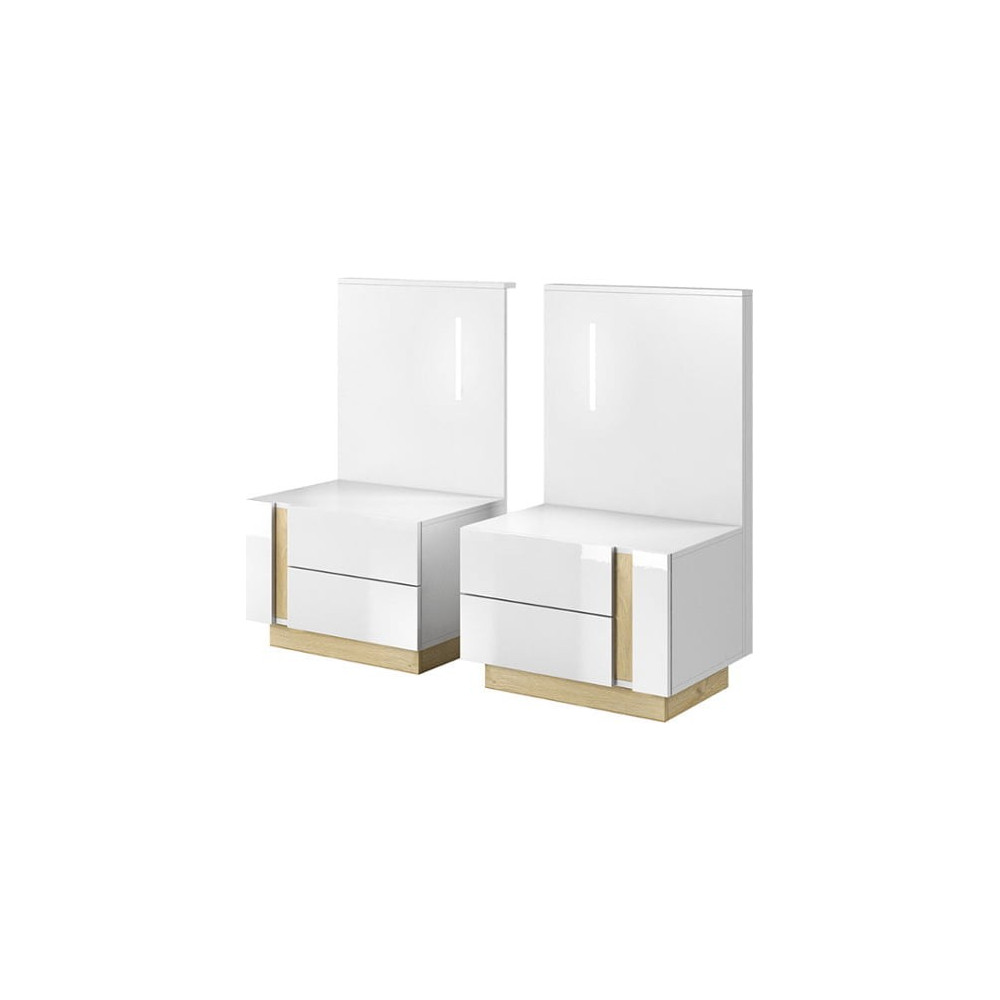 Oryginalna kolekcja mebli, która sprawi, że Twoje wnętrze stanie się nowoczesne i stylowe. Wszystko to za sprawą połysku na frontach, przełamanych dębowym kontrastującym akcentem.