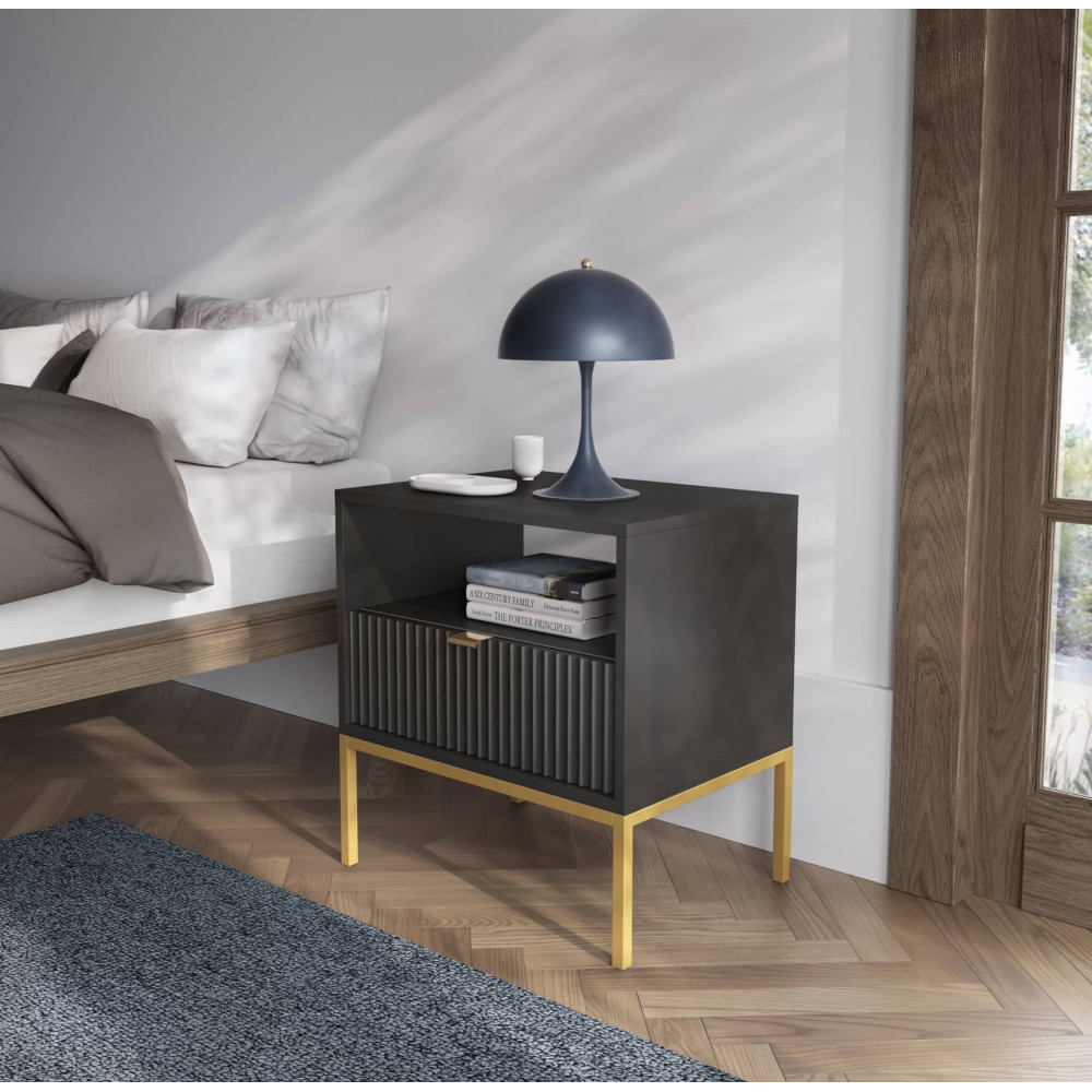 Stolik Nocny Viva Czarny Mat/Złoty stelaż