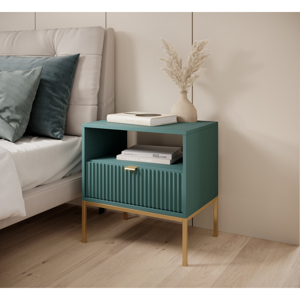 Stolik nocny Viva 54 Labrador Green/złoty stelaż/złoty uchwyt