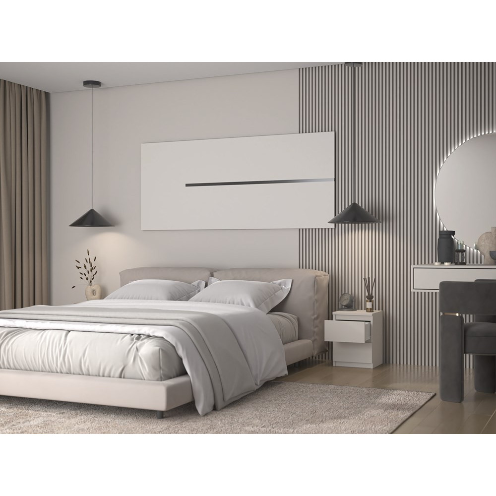 Szafka nocna M2 z serii MALWA to idealny dodatek do każdej nowocześnie urządzonej sypialni. W kolorze KASZMIR, będącym unikalną nowością na polskim rynku meblarskim, ten mebel z pewnością wyróżni się w każdym wnętrzu, dodając mu wyrafinowanego charakteru.