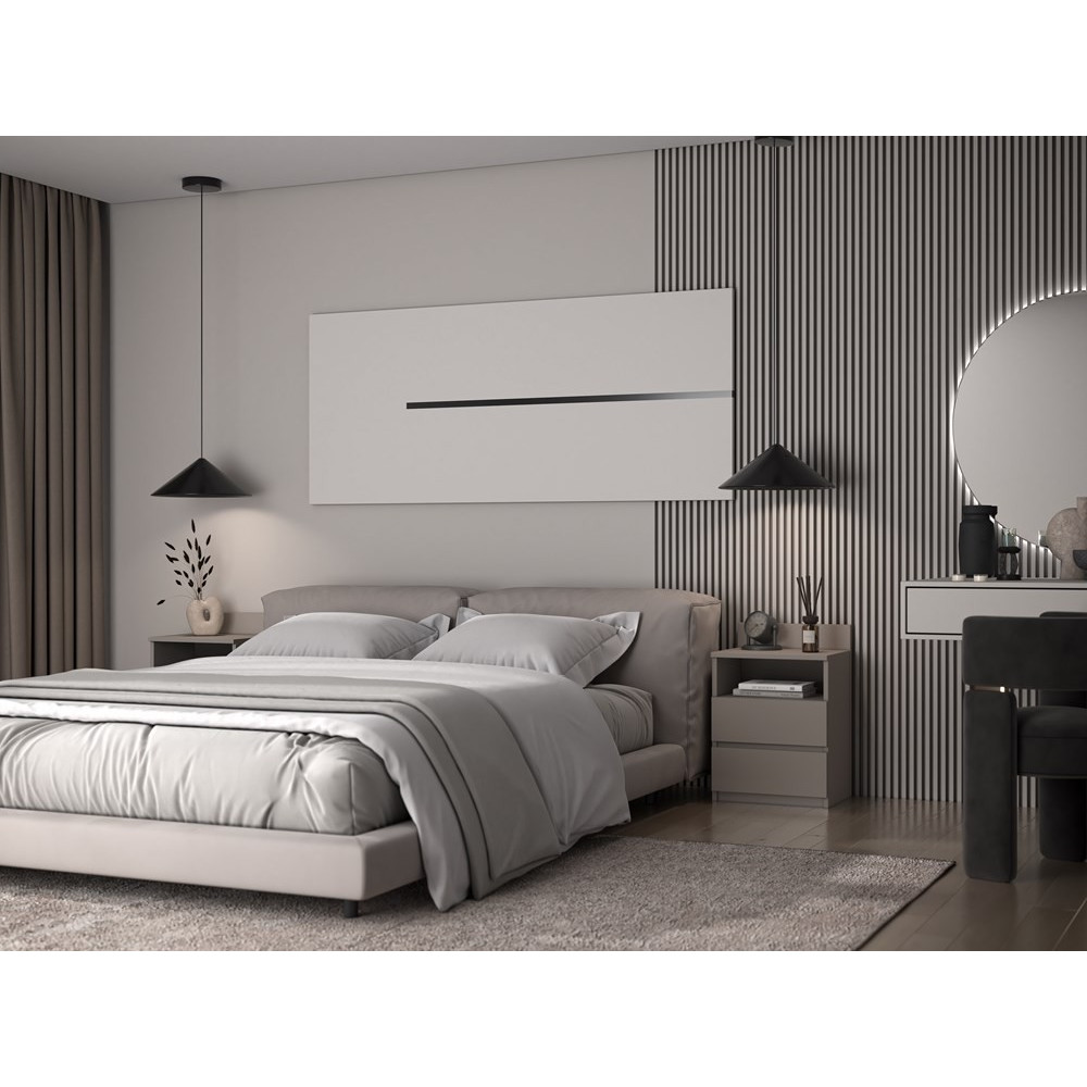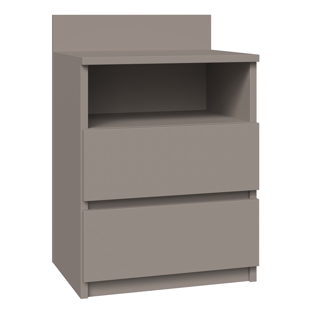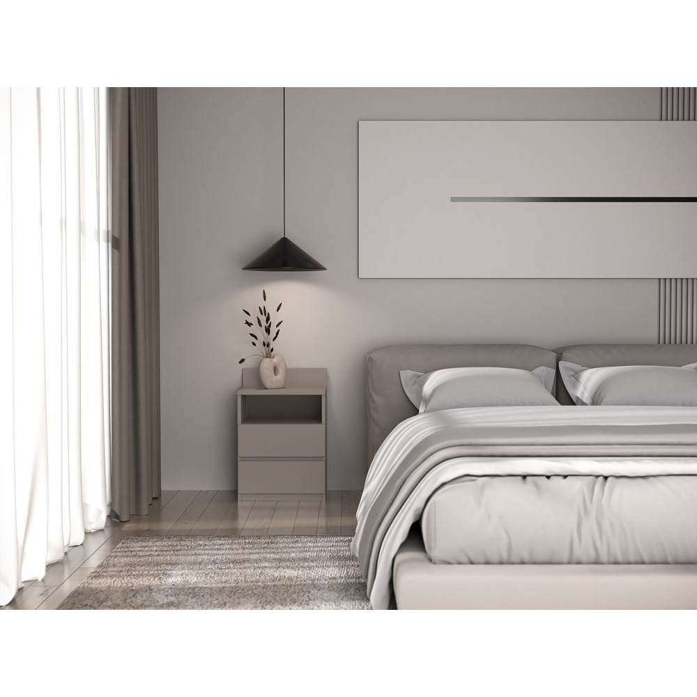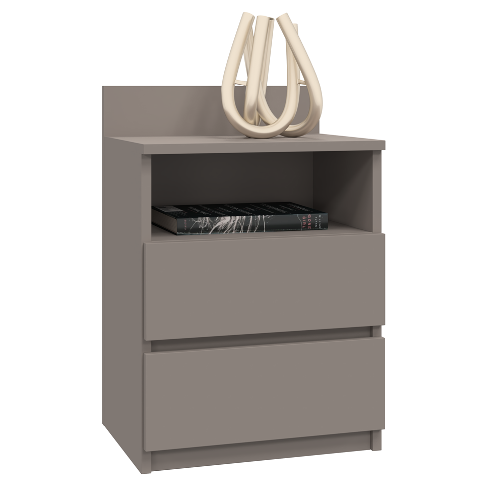 Szafka nocna M1 z serii MALWA to idealny dodatek do każdej nowocześnie urządzonej sypialni. W kolorze GLINA, będącym unikalną nowością na polskim rynku meblarskim, ten mebel z pewnością wyróżni się w każdym wnętrzu, dodając mu wyrafinowanego charakteru.