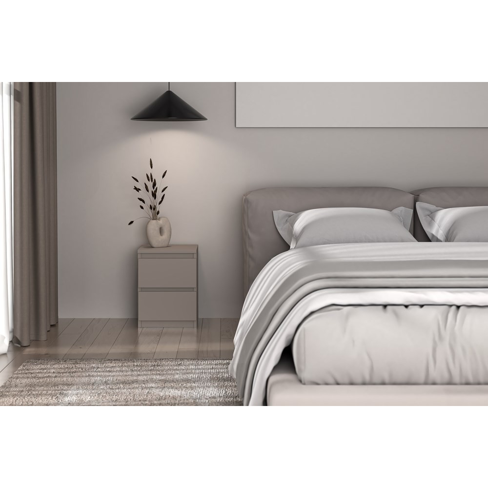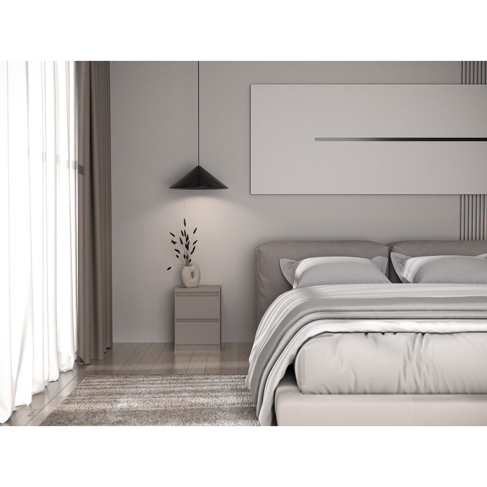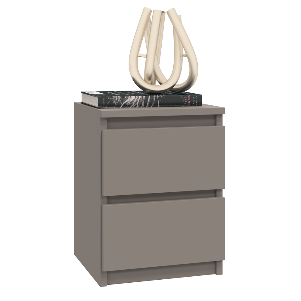 Szafka nocna M2 z serii MALWA to idealny dodatek do każdej nowocześnie urządzonej sypialni. W kolorze GLINA, będącym unikalną nowością na polskim rynku meblarskim, ten mebel z pewnością wyróżni się w każdym wnętrzu, dodając mu wyrafinowanego charakteru.