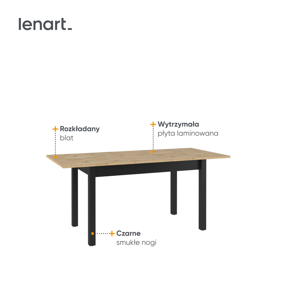 Rozkładany stół to perfekcyjny wybór dla osób pragnących dodać elegancji i nowoczesnego stylu do swojego wnętrza. Jego czarne, smukłe nogi w połączeniu z blatem imitującym naturalne drewno dębu artisan tworzą zestaw o wyjątkowym loftowym charakterze. Dzięki funkcji rozkładania stół doskonale sprawdzi się zarówno podczas codziennych posiłków, jak i w trakcie większych spotkań z rodziną czy przyjaciółmi. Wykonany z wysokiej jakości materiałów, stół łączy trwałość z estetyką, stając się centralnym punktem każdego salonu czy jadalni. To praktyczne i stylowe rozwiązanie, które nadaje wnętrzu nowoczesny wygląd.