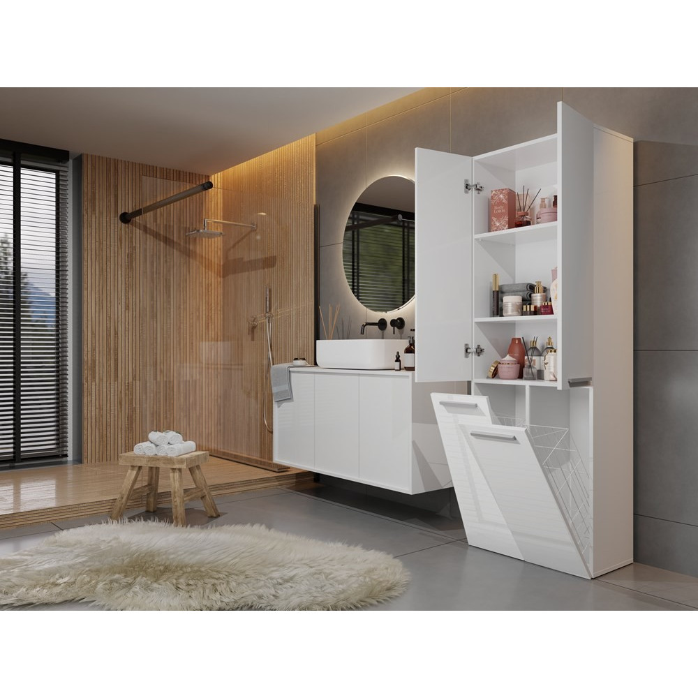 • Szafka posiada 3 praktyczne, zamykane półki oraz 2 kosze