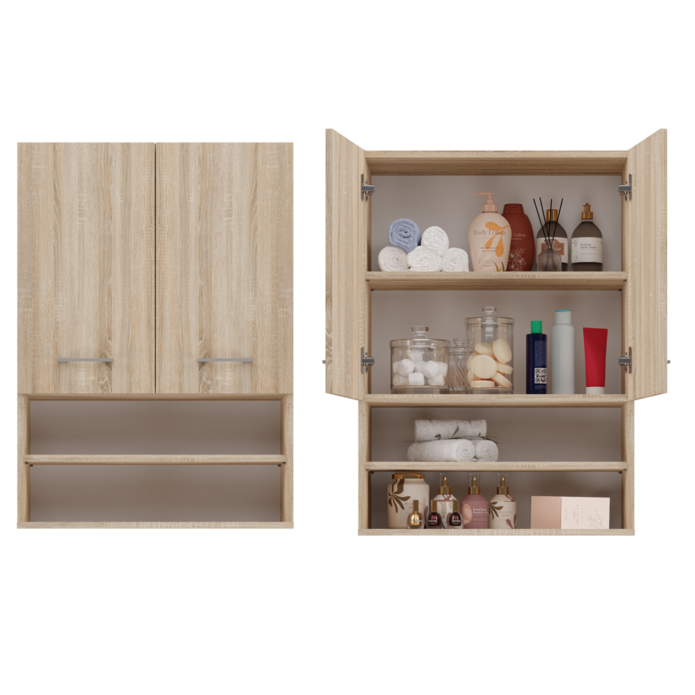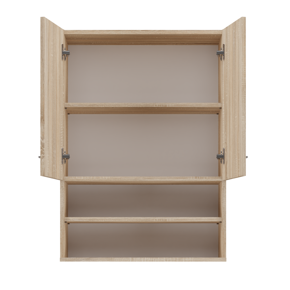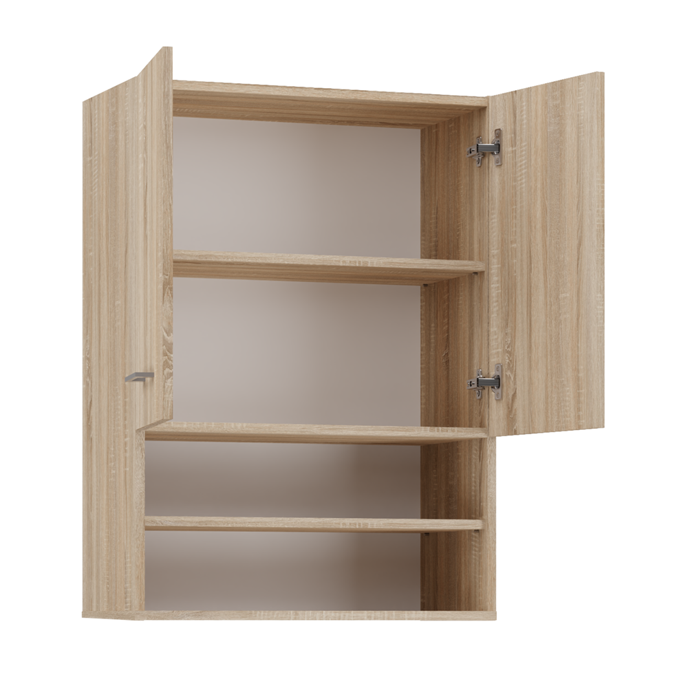 • Szafka posiada 2 półki otwarte oraz 2 schowane za drzwiami