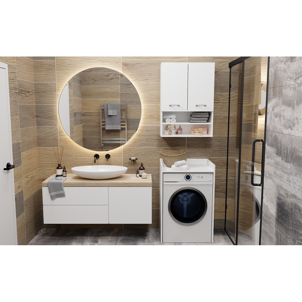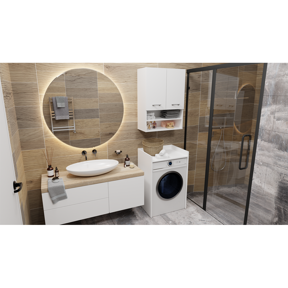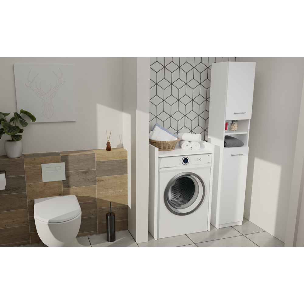 Stojąca szafka łazienkowa nakładana na pralkę to idealne rozwiązanie dla małych powierzchni aby jeszcze lepiej zagospodarować Twoją łazienkę. Przestronna szafka łazienkowa na której położysz ręczniki, kosmetyki i inne akcesoria łazienkowe.