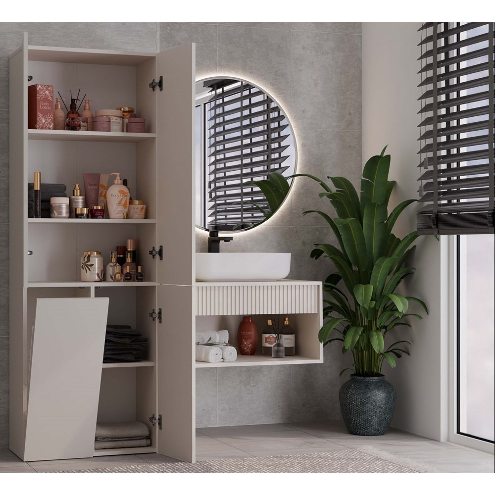 • 4 drzwi (za 3 drzwiami półki, za 1 drzwiami kosz na pranie/bieliznę)