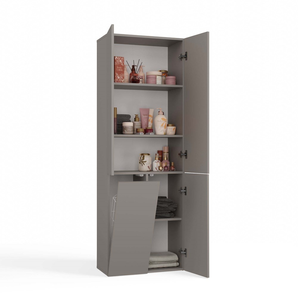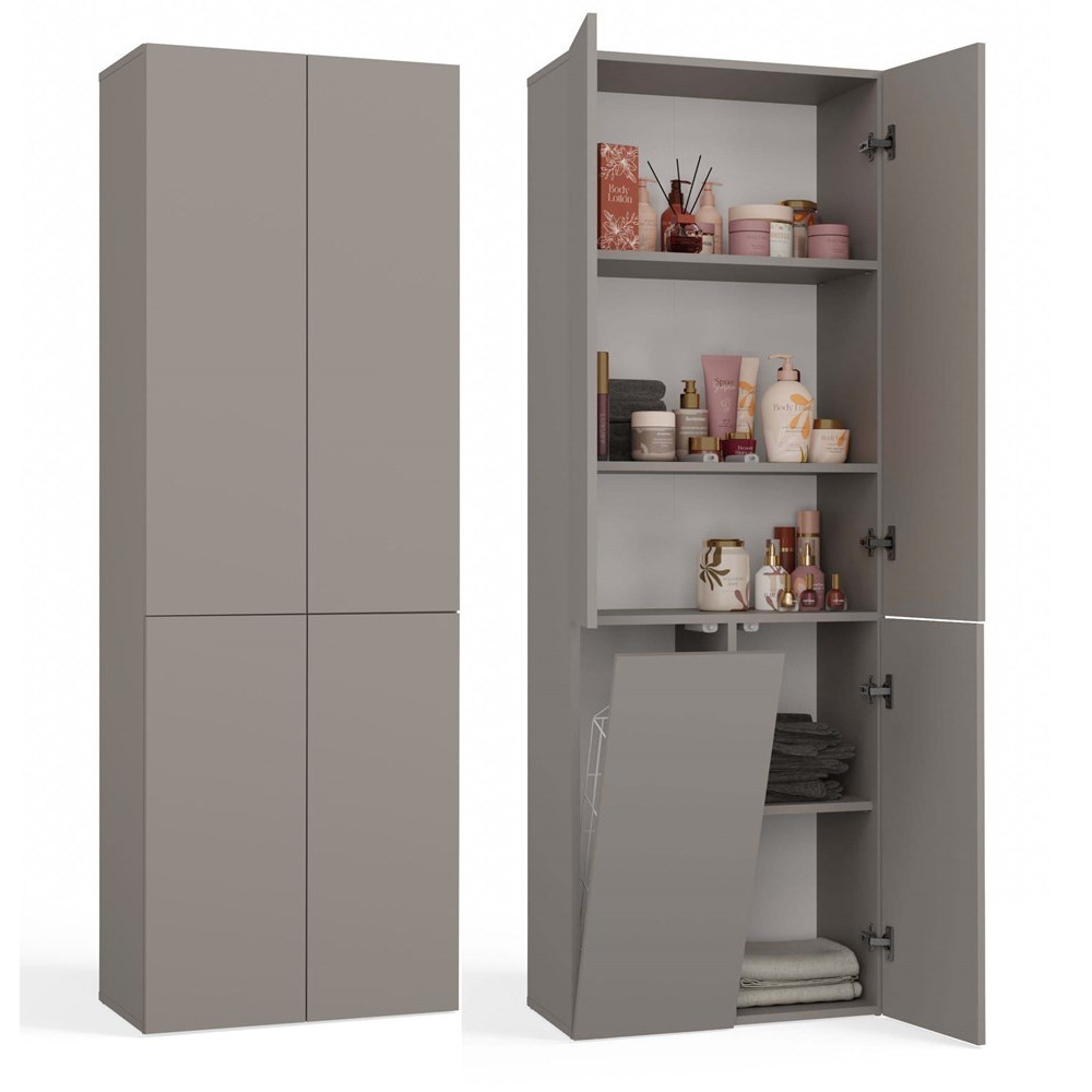 • 4 drzwi (za 3 drzwiami półki, za 1 drzwiami kosz na pranie/bieliznę)