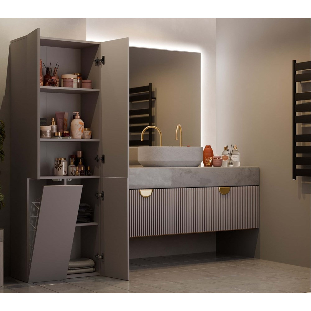 • Szafka wyposażona w 5 zamykanych półek oraz praktyczny kosz, idealny na przechowywanie bielizny lub ręczników.
