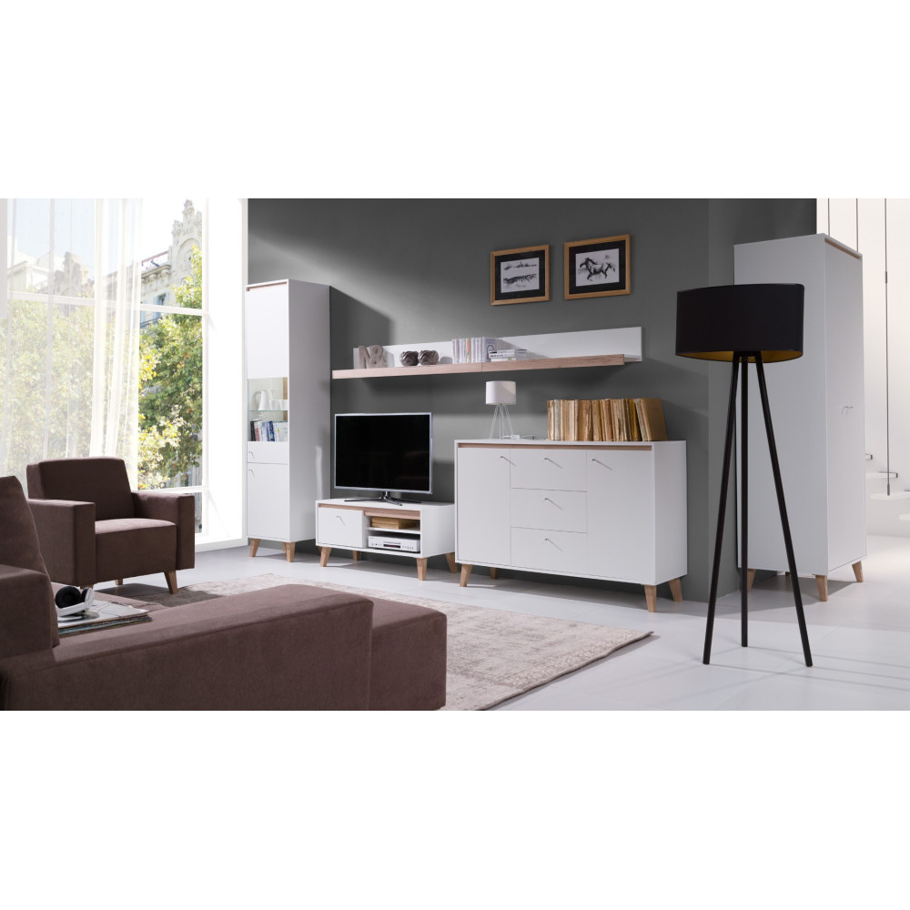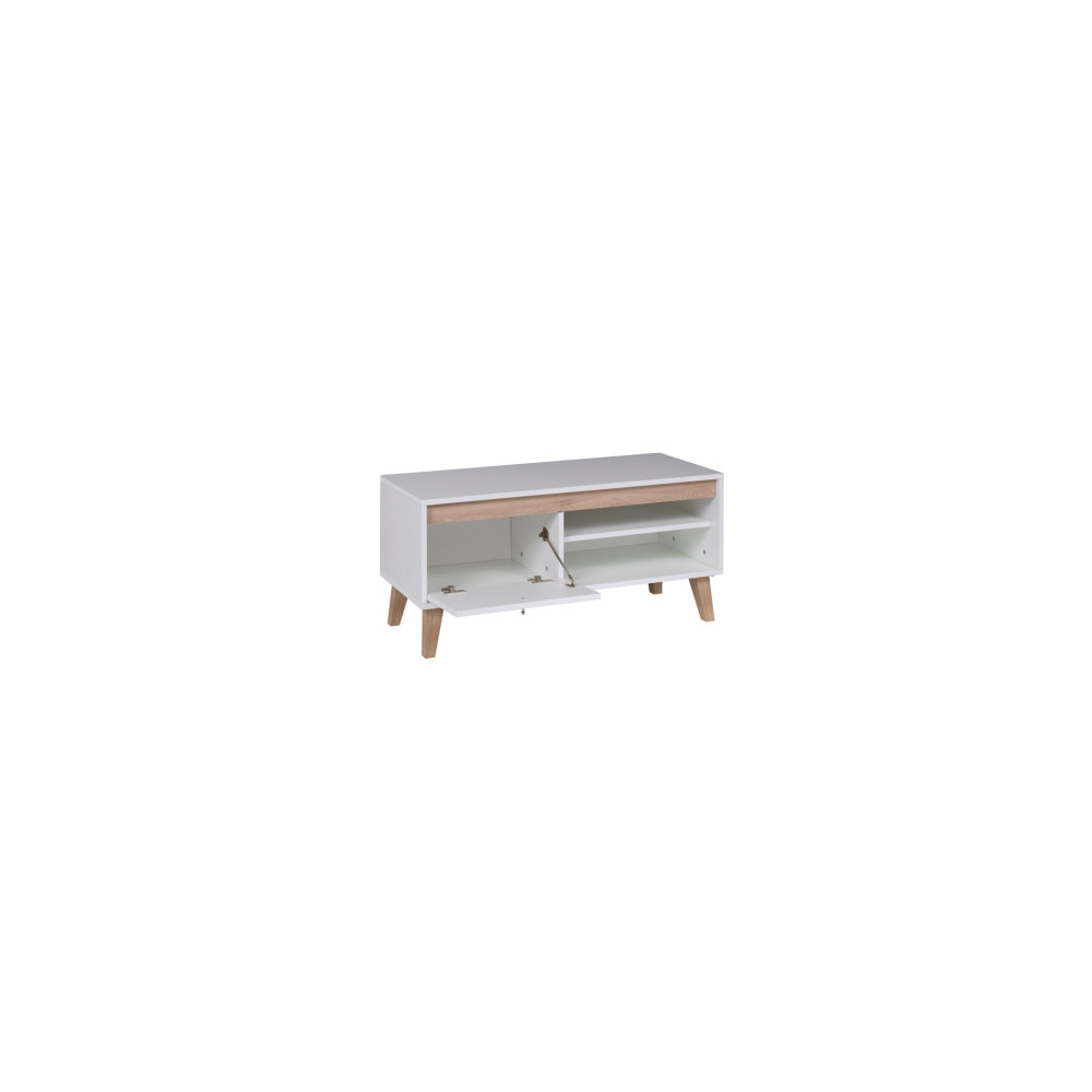 - Korpus i front w kolorze białym, a wstawki i nogi w motywie Dąb San Remo jasnym
