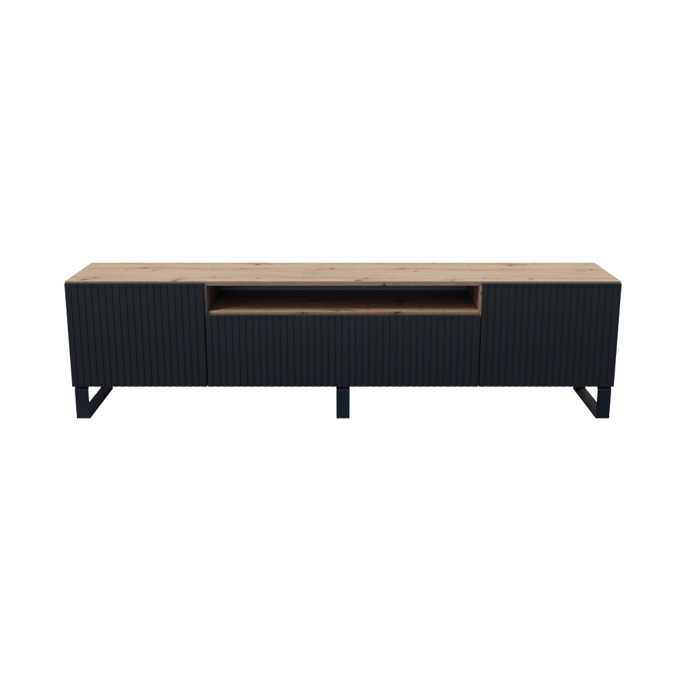 Szafka RTV Remo Dąb Artisan/Czarny Mat Frezowana stojąca