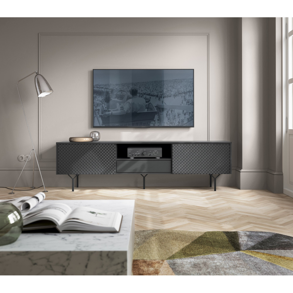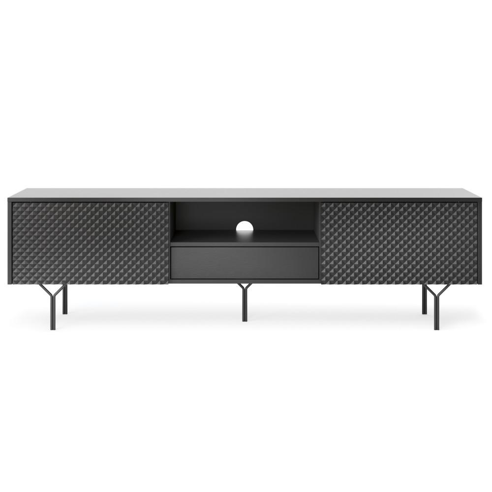 Wprowadź do swojego wnętrza niezwykłą elegancję i stylowy wygląd dzięki naszej czarno-eleganckiej szafce RTV Olivia. Ten mebel, wykonany z płyty laminowanej o grubości 16 mm, został starannie zaprojektowany, aby pasować do nowoczesnych wnętrz. Jego czarna noga dodaje mu niepowtarzalnego uroku i klasy.