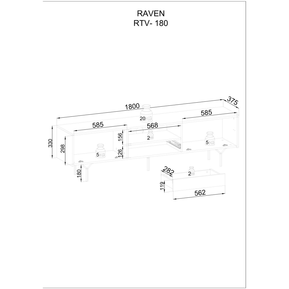 - głębokość 32cm, co oznacza, że oferuje dużo miejsca na przechowywanie różnych urządzeń elektronicznych i akcesoriów. Dzięki temu rozwiązaniu możesz łatwo utrzymać porządek wokół telewizora, systemu audio czy konsoli, jednocześnie dodając do swojego wnętrza wytworny akcent.