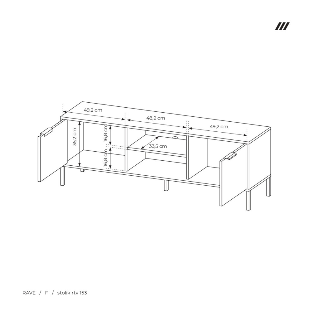 Szafka RTV zapewnia praktyczną przestrzeń do przechowywania sprzętu elektronicznego, takiego jak telewizor, odtwarzacz DVD czy konsola do gier. Dwustronne drzwiczki otwierają się na zewnątrz, umożliwiając łatwy dostęp do wnętrza szafki. Dodatkowo, półka otwarta jest idealnym miejscem na wystawienie dekoracji lub układanie ulubionych książek.