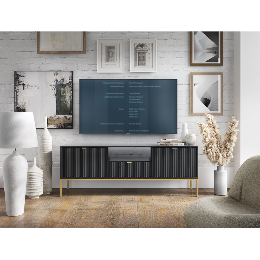 Stolik RTV Viva 154 Czarny Mat/Złoty stelaż