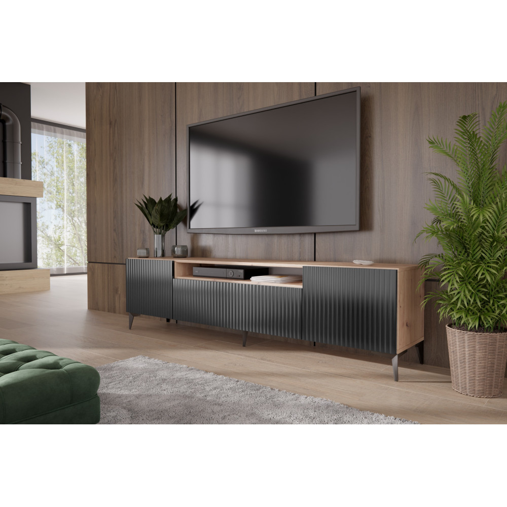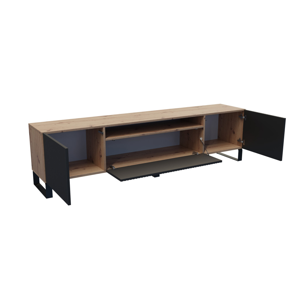 Szafka RTV Remo Dąb Artisan/Czarny Mat Frezowana stojąca noga gwiazda