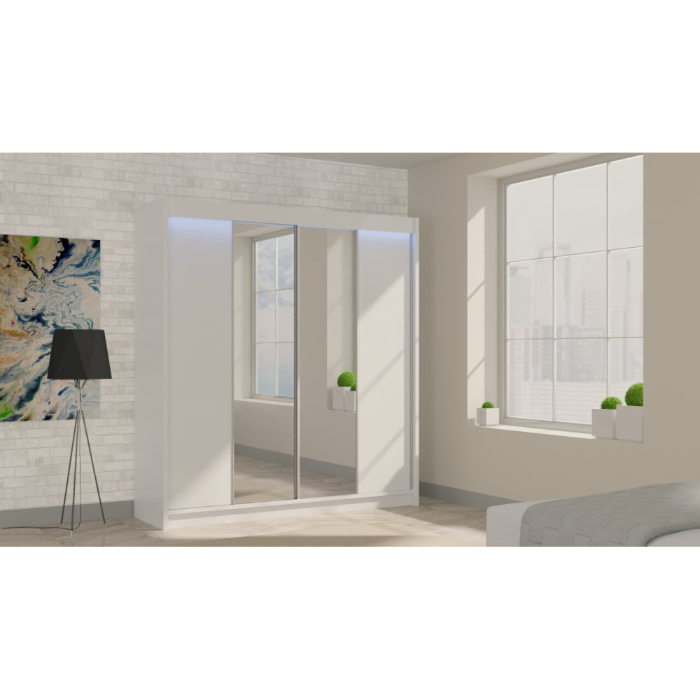 W skład zestawu wchodzą: korpus, półki, drążek, zestaw montażowy, fronty szkło/ lustro