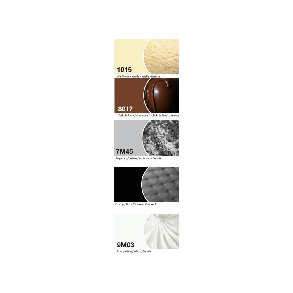 Wybarwienia szkła lacobel: biały, czarny, wanilia, czekolada, szary